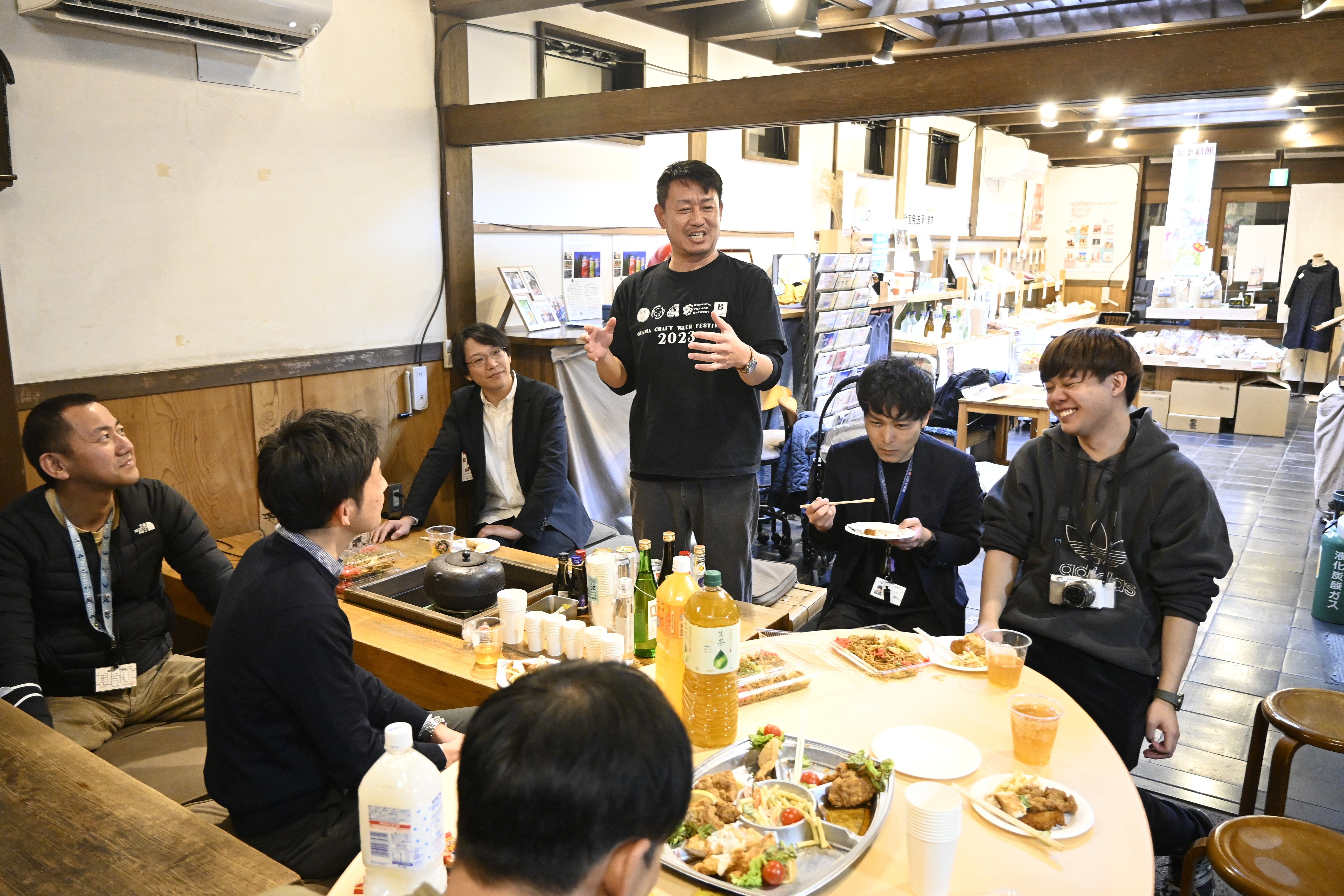 ビール造りの経緯を語る栗原さん(中央)