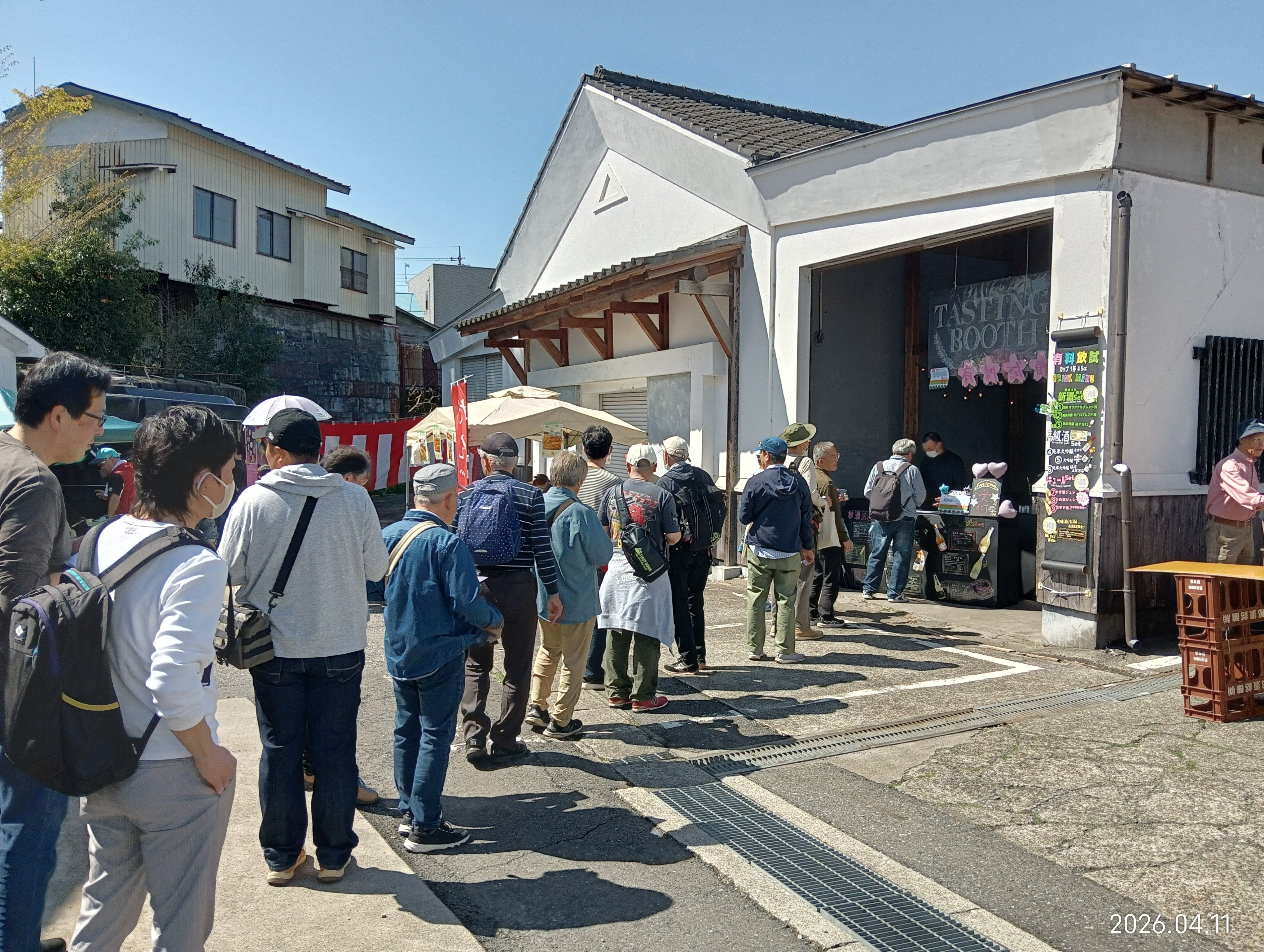有料試飲コーナーにできた長蛇の列=4月11日、那須烏山市