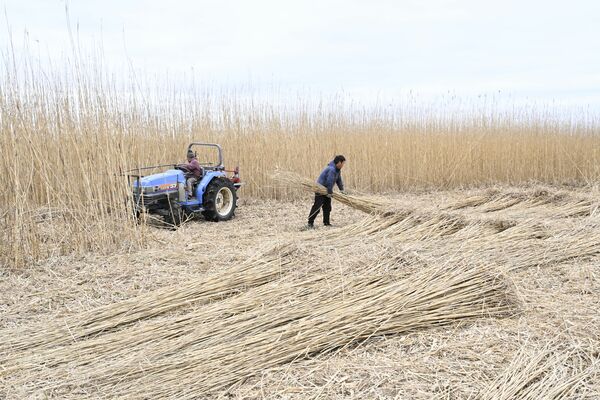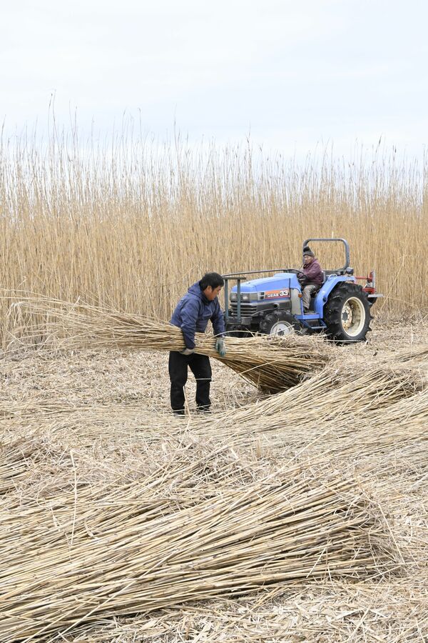 渡良瀬遊水地で行われたヨシの刈り取り作業