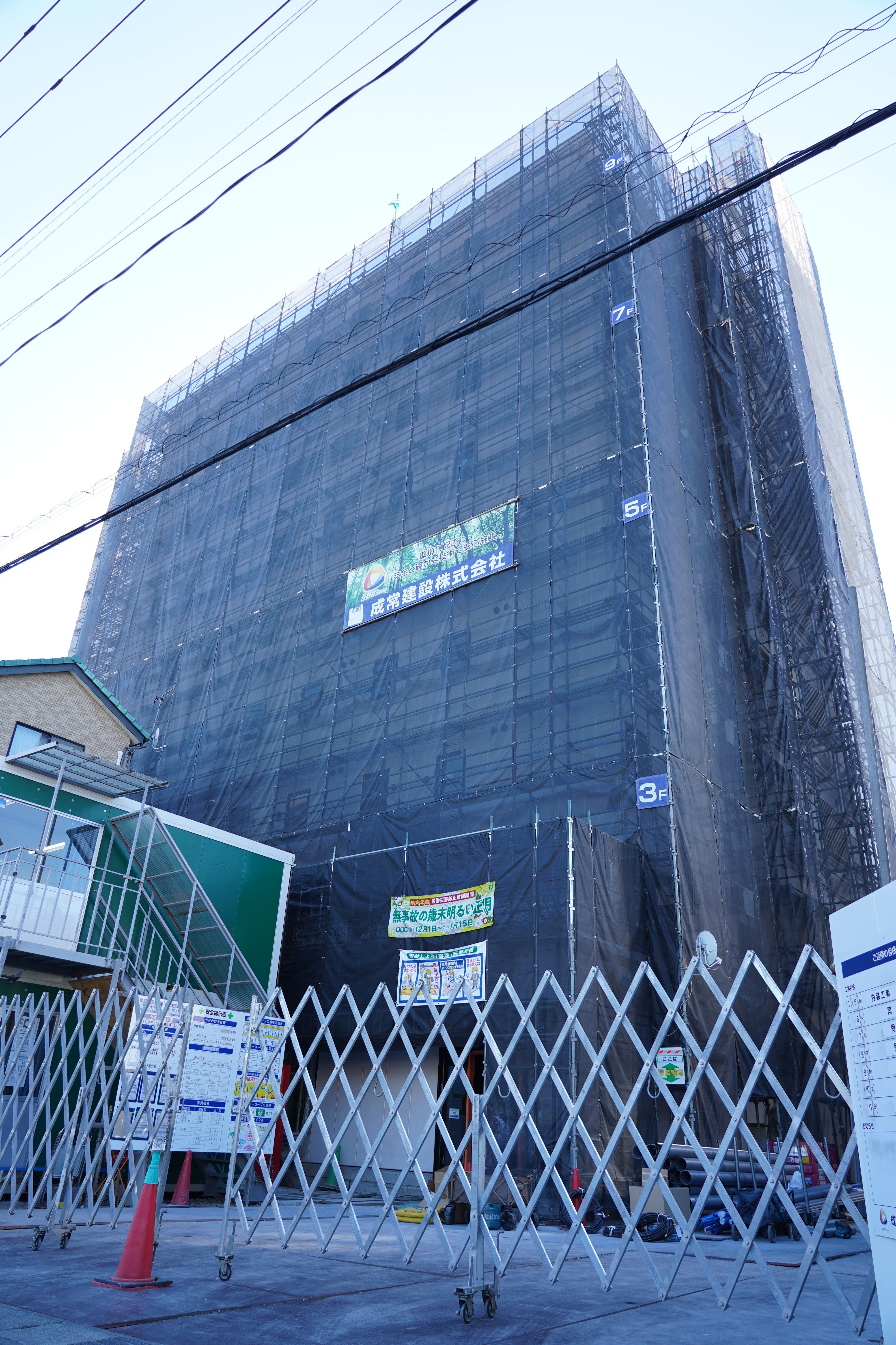 建設中の「ほてる寛楽プレミア宇都宮駅東口(仮)」=9日午前10時45分、宇都宮市元今泉1丁目