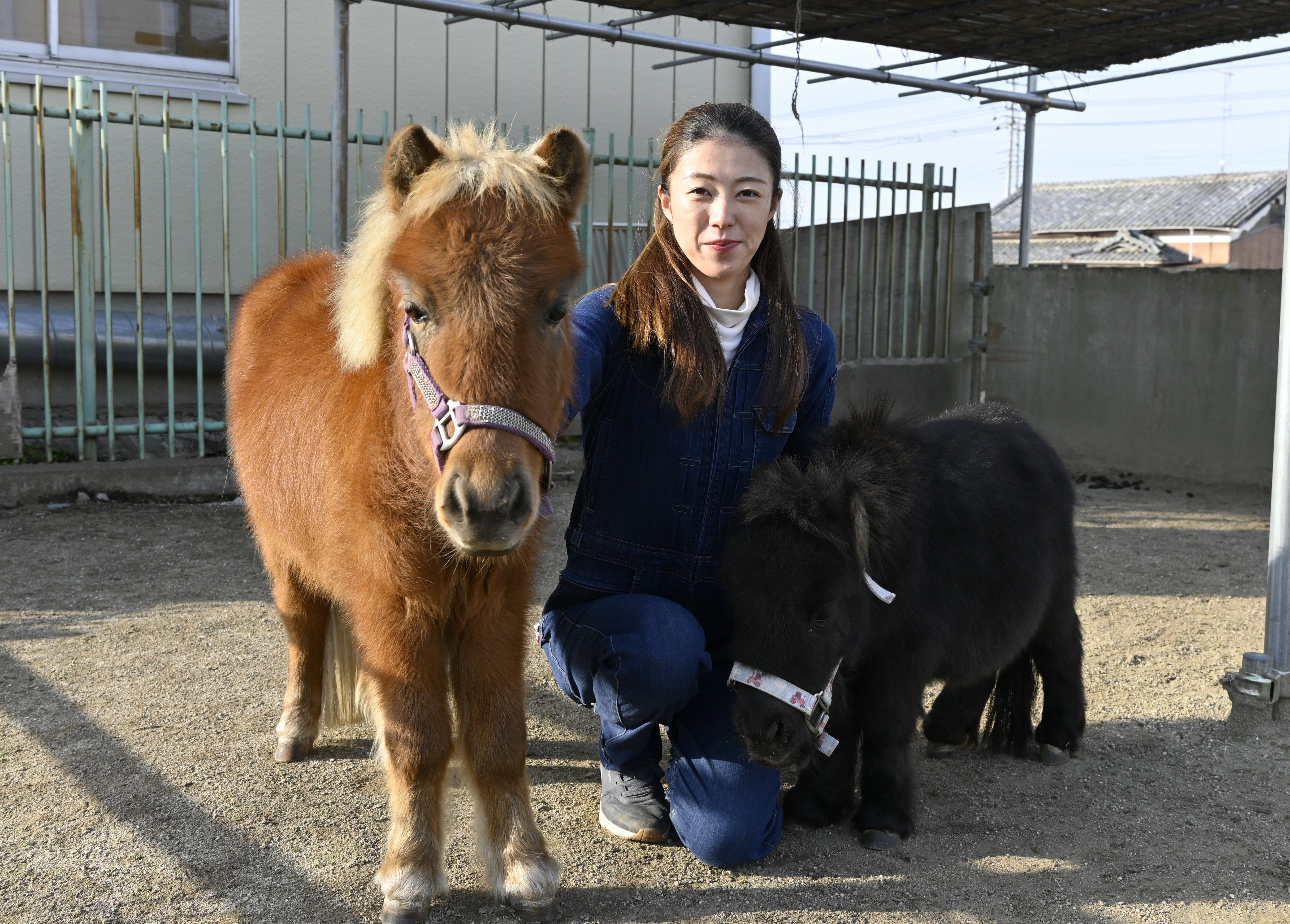 大木さんとミニチュアホースのしおんくん(左)、おとちゃん