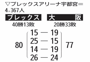 ブレックス、粘り強さ見せ白星 大阪に競り勝ち3連勝 下野新聞社冠試合 地区優勝マジック5に