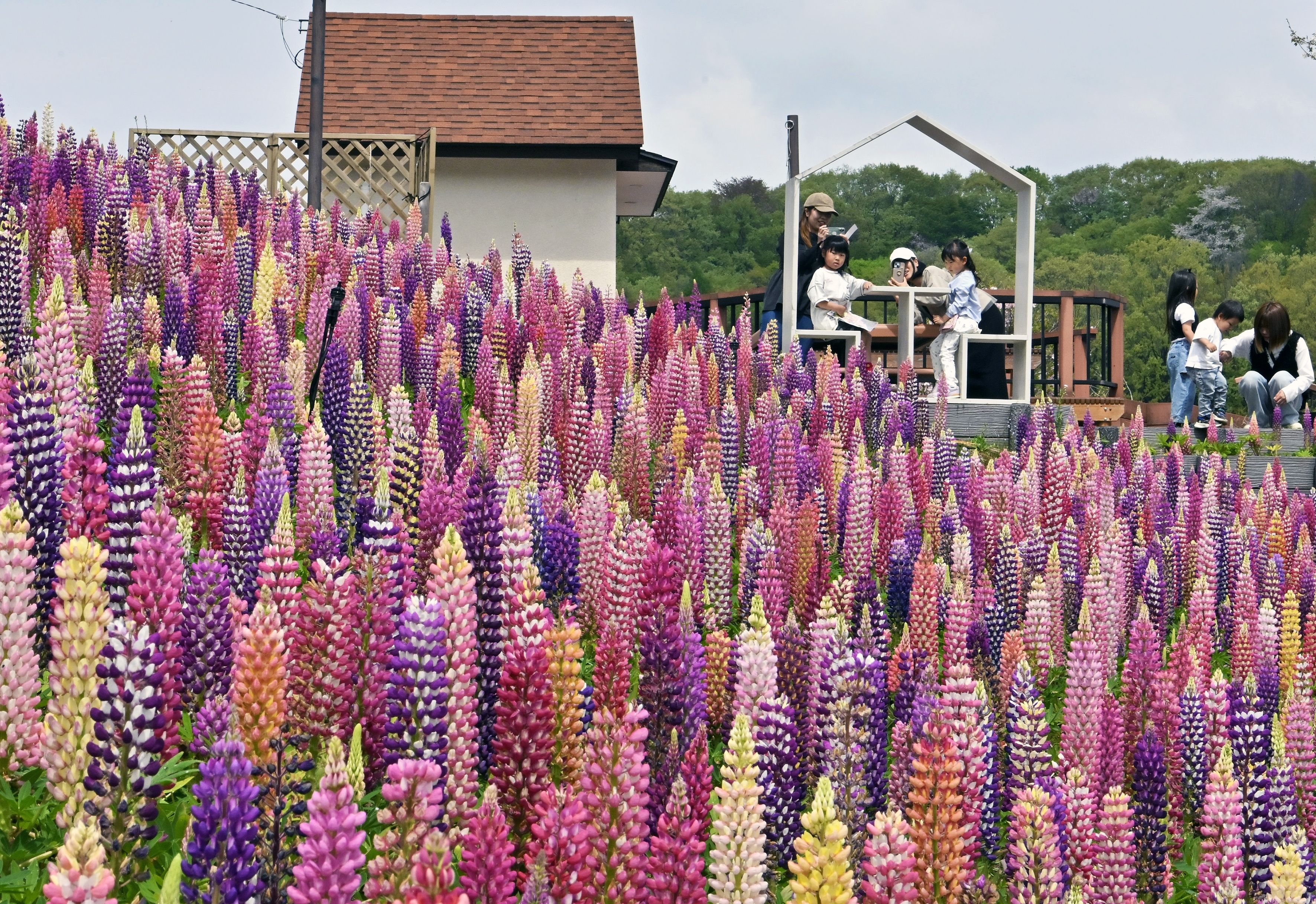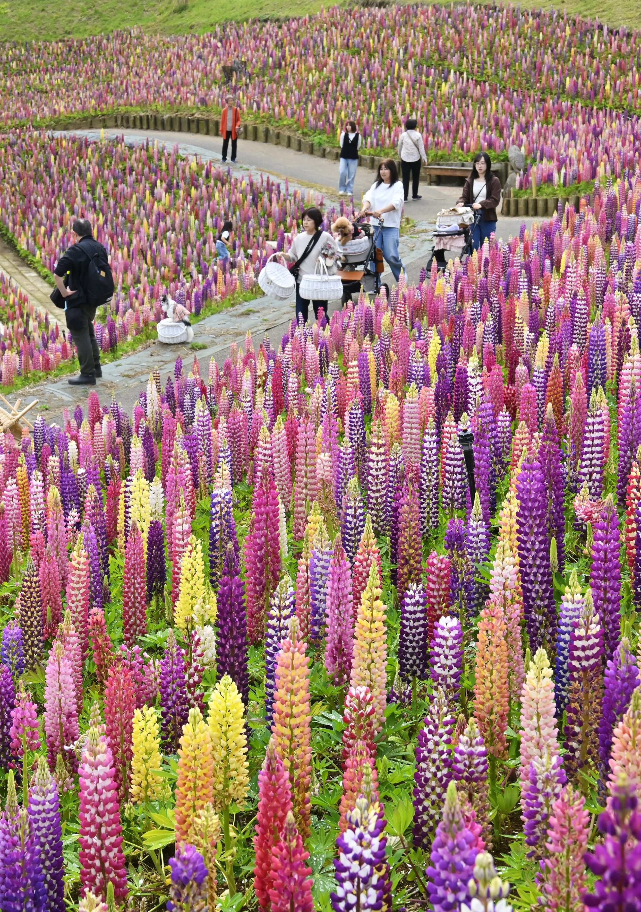 色鮮やかに斜面を染めるルピナス=15日午前10時5分、鹿沼市茂呂
