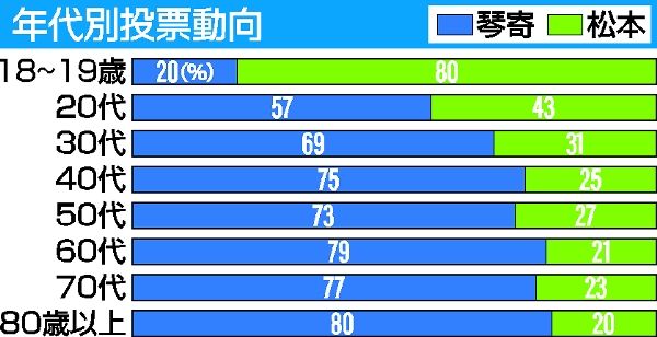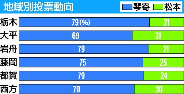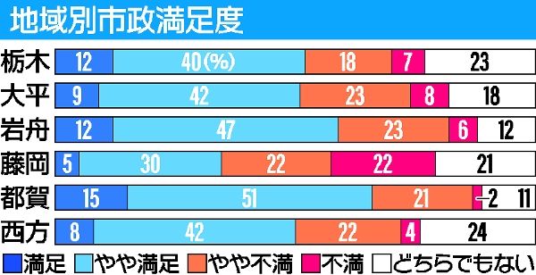栃木市長選出口調査 琴寄氏、栃木地域で8割近い支持集める 市政満足度は旧市町でばらつき
