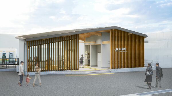 工事が進む山前駅の新駅舎