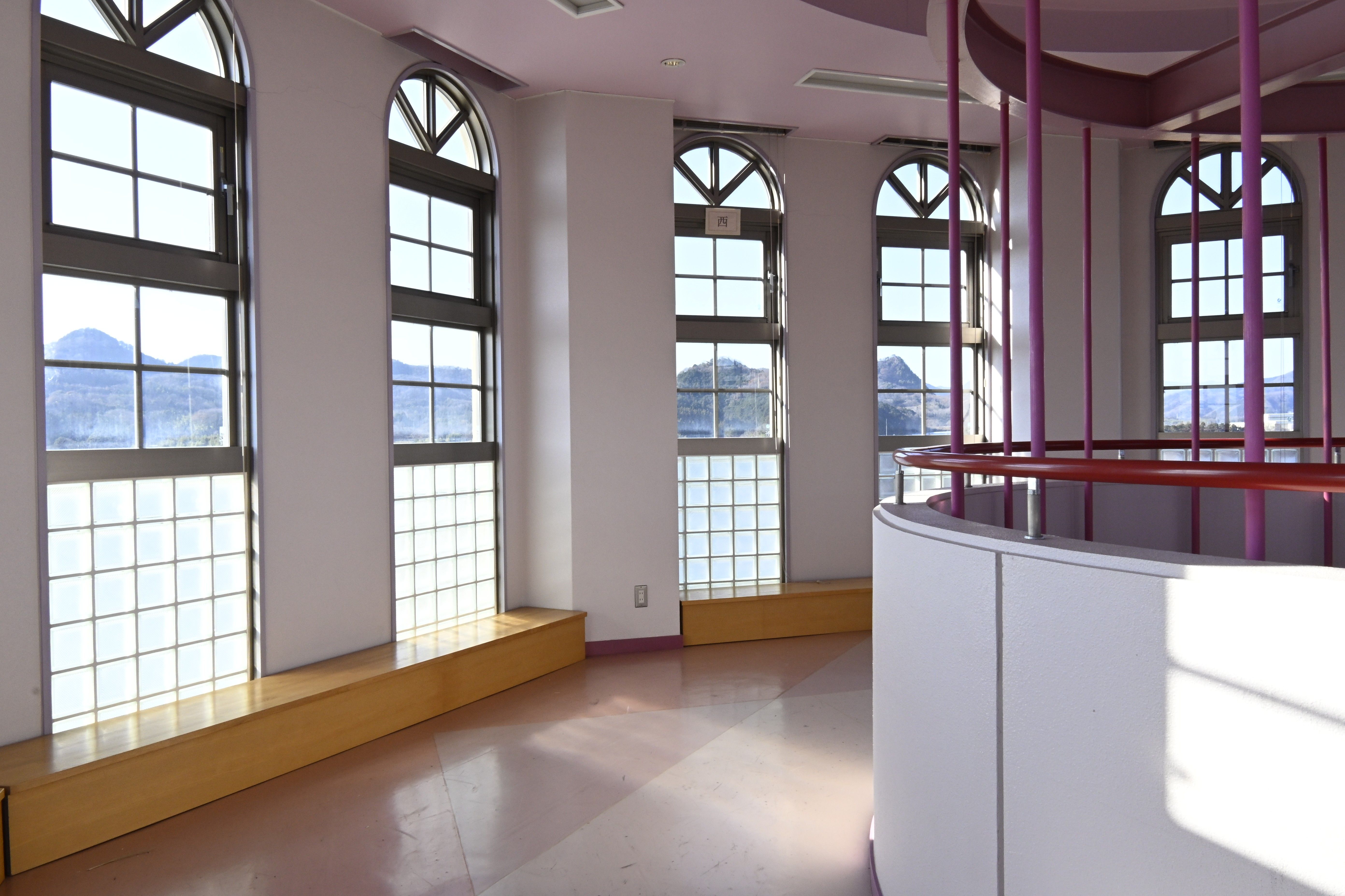 洋風の近代建築をコンセプトに建てられた千塚小の校舎。手前の石碑には教育指標が刻まれている