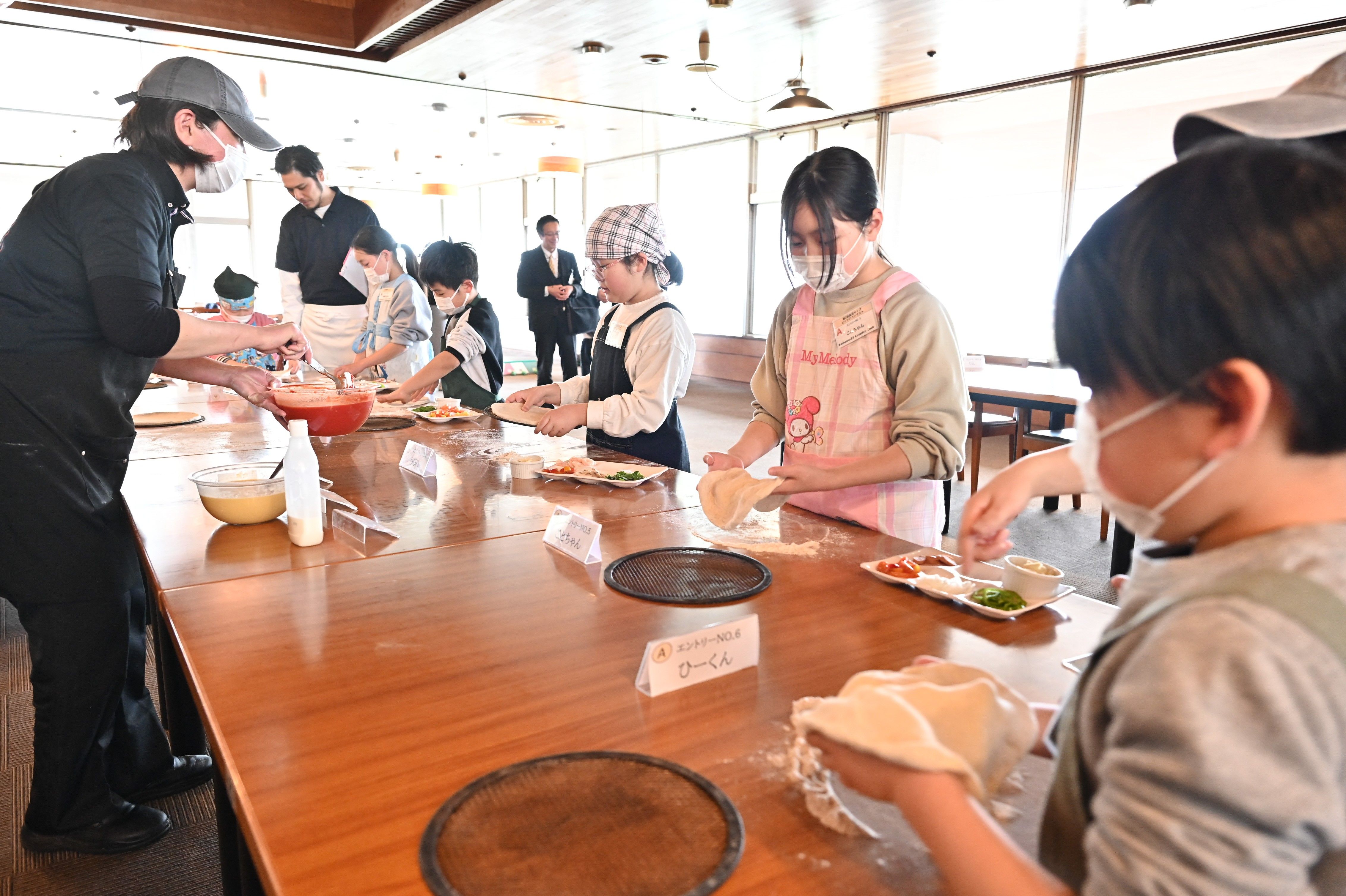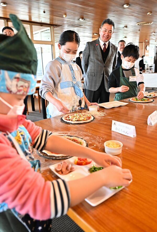 ピザ作りに熱中する子どもたち