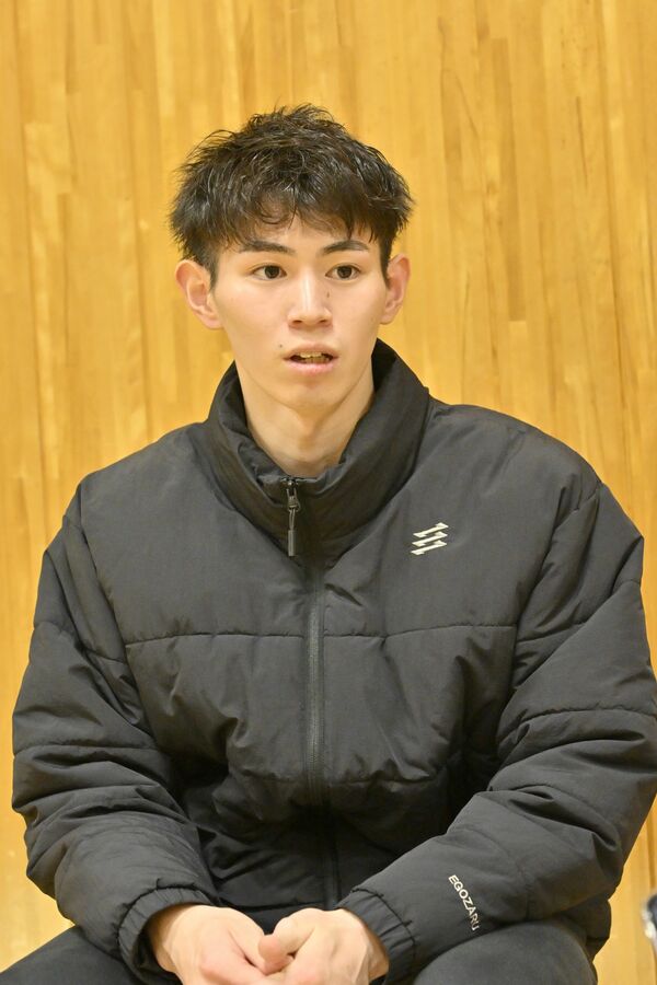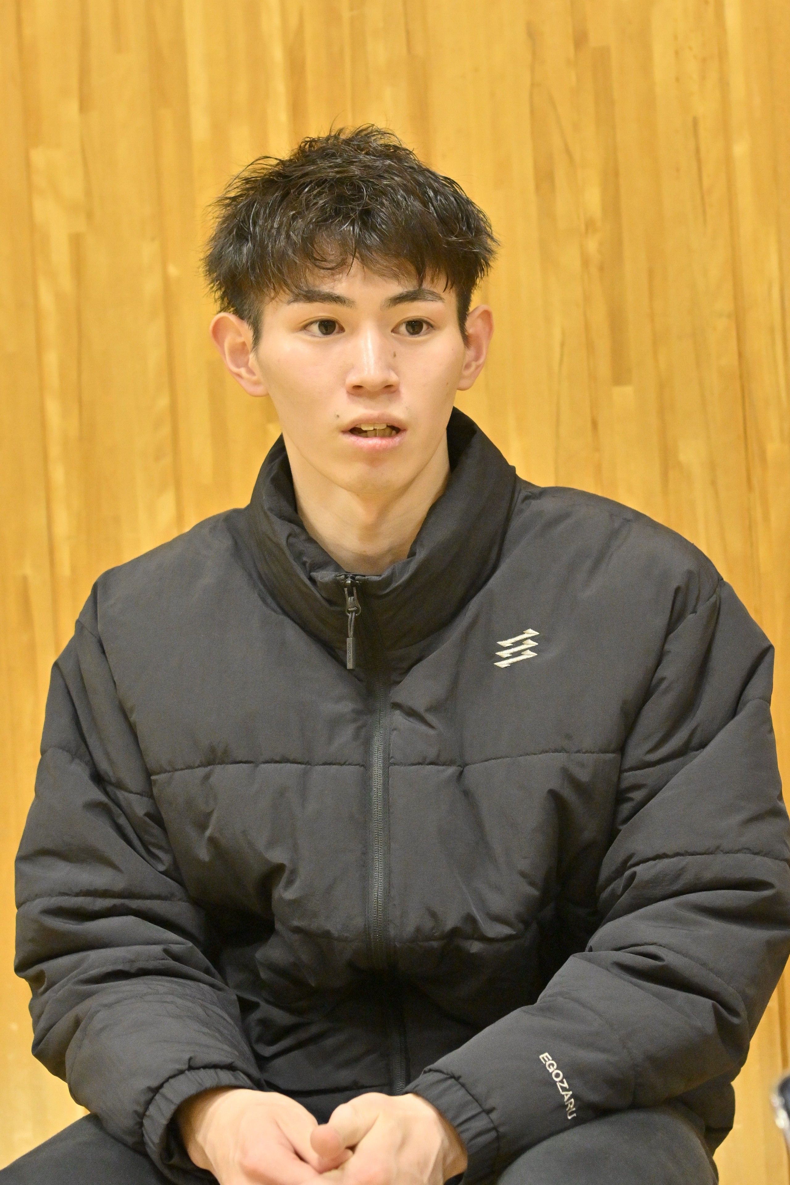 試合終了後のインタビューに答える白鴎大出身の三遠・根本