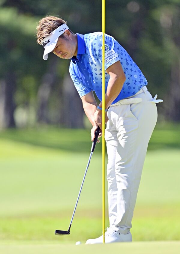 1番でパーパットを沈めた松村=日光CC、磯真奈美撮影