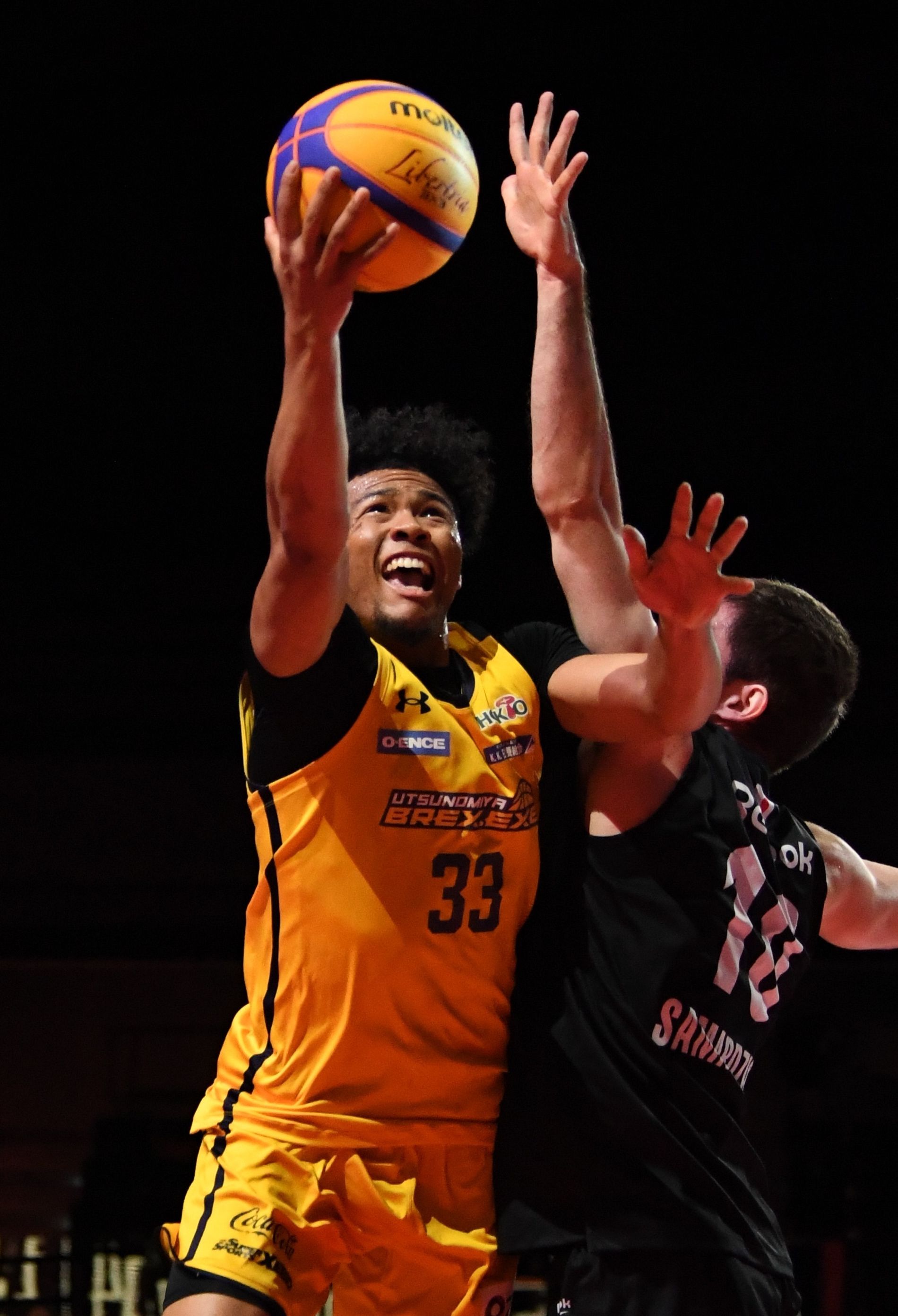 決勝9分、ブレックスのソロモンが積極的にアタックする