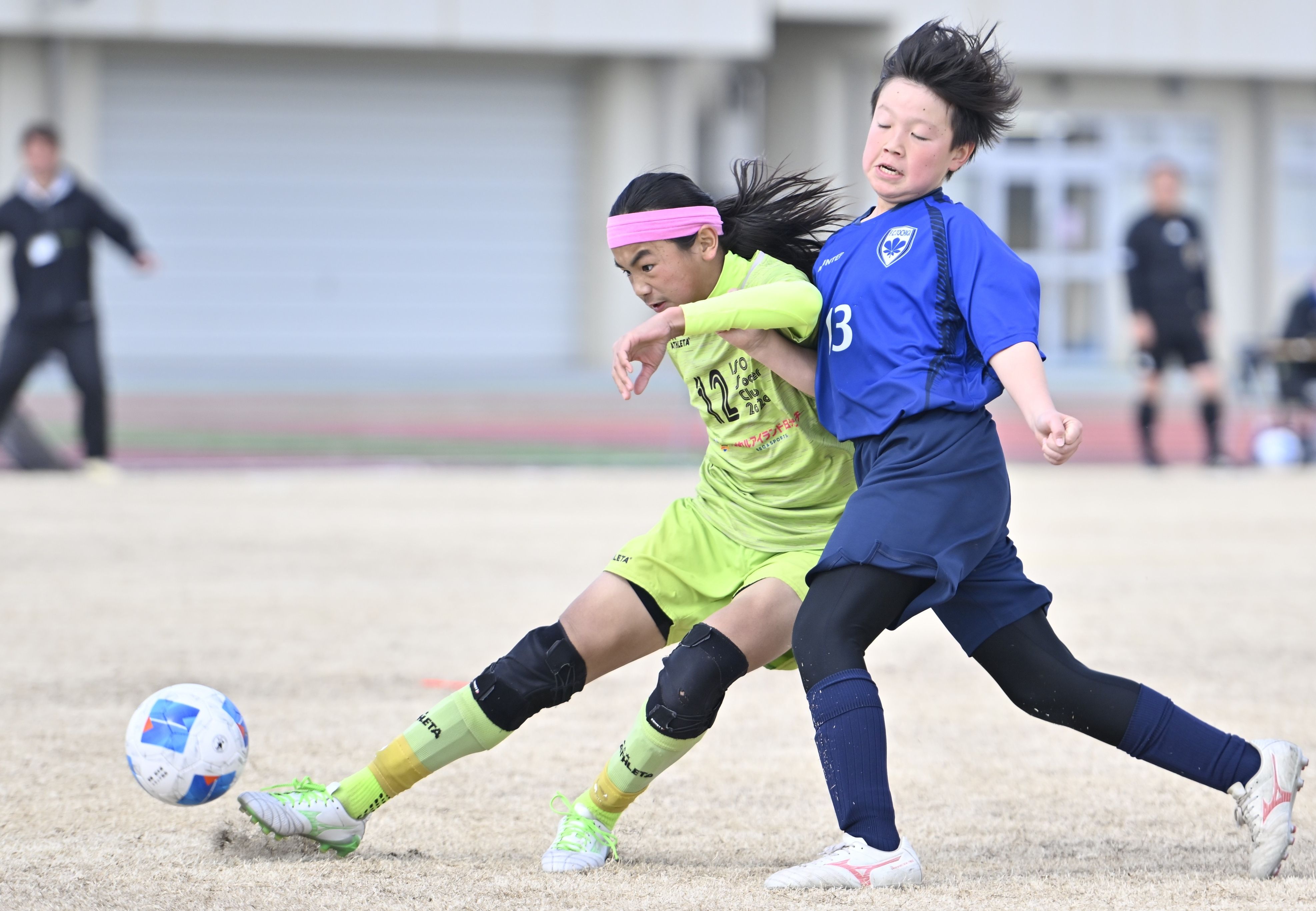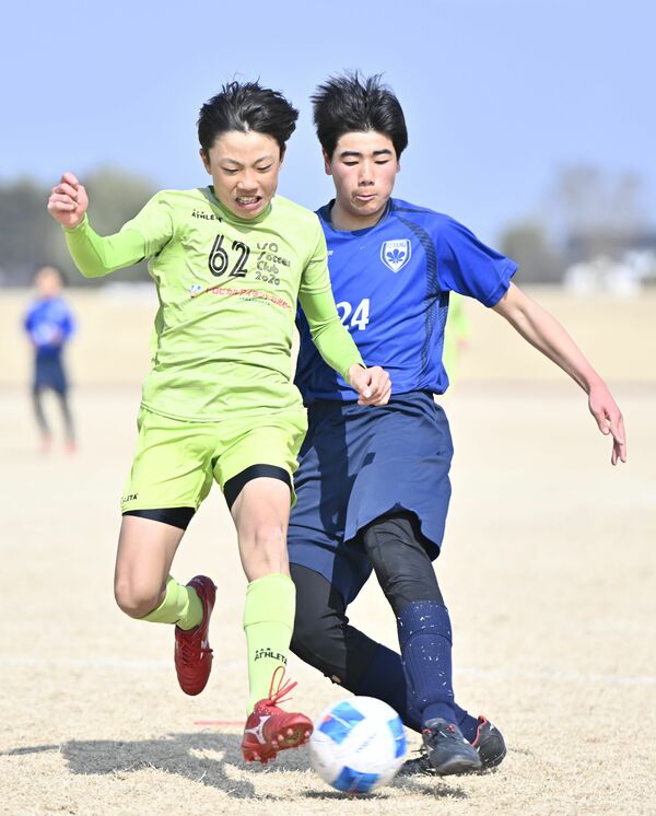 前半6分、相手のシュートをブロックするISO SC(宇河)のDF畑野(左)