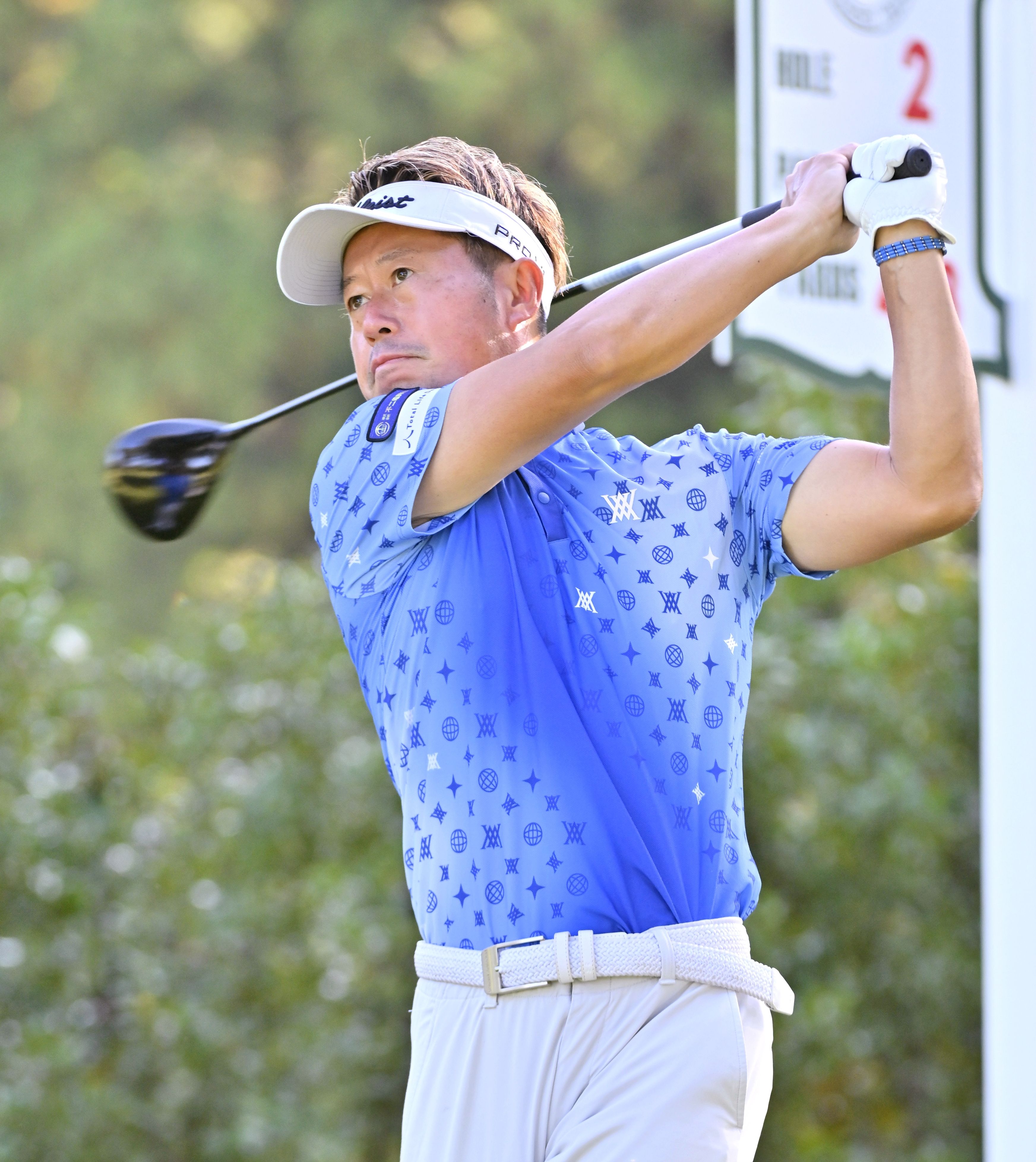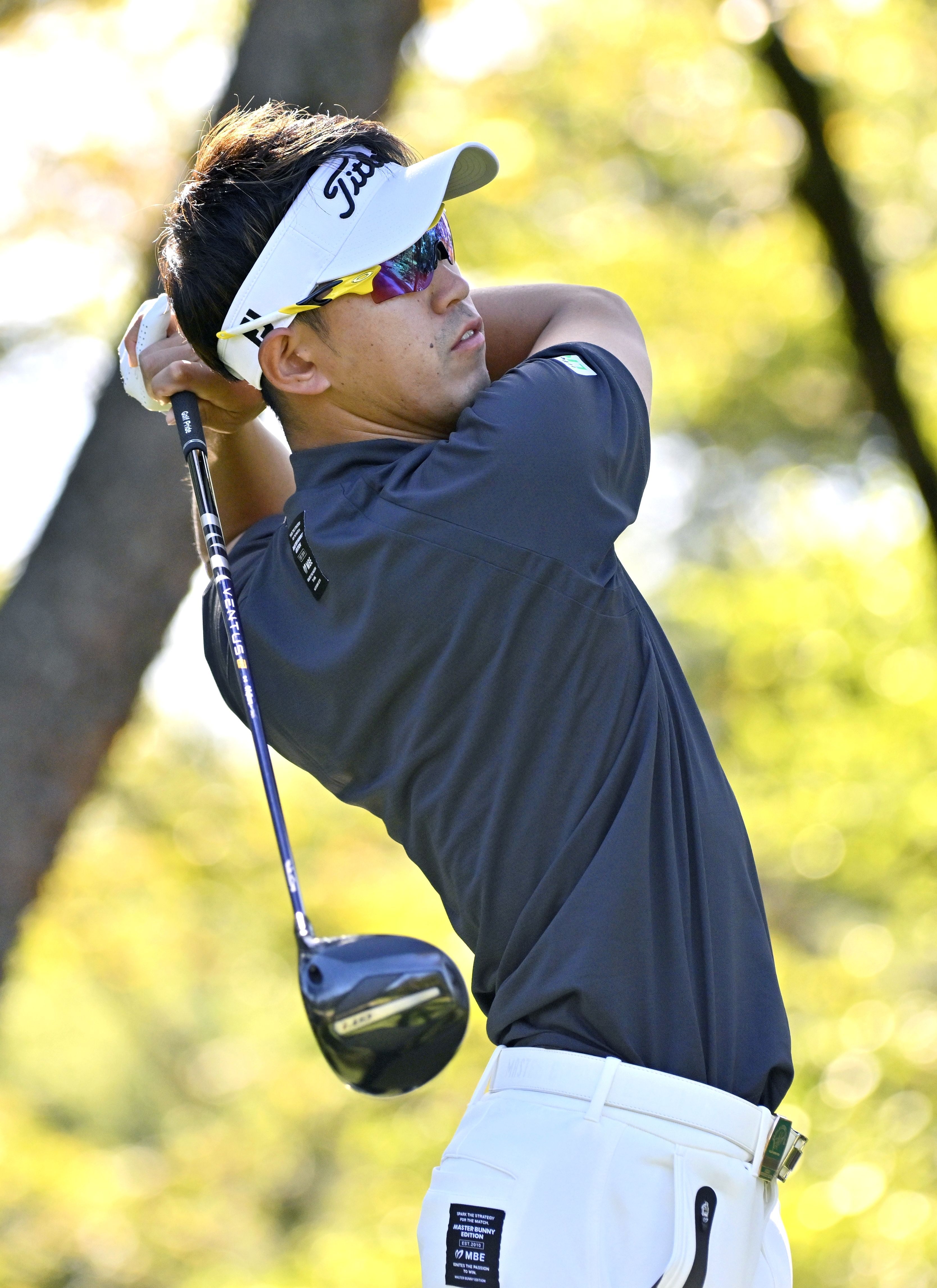 18番ティーショットを放つ阿久津=日光CC、磯真奈美撮影