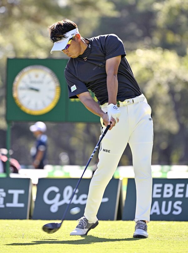 1番ティーショットを放つ阿久津=日光CC、磯真奈美撮影
