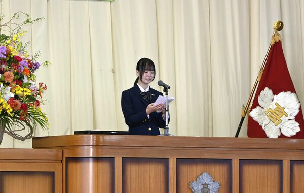 生徒を代表してあいさつした生徒会長の斎藤さん