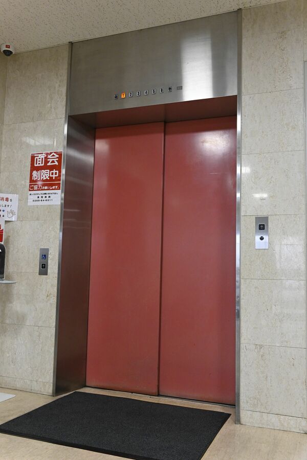 地震により一時停止した真岡病院のエレベーター=1日正午、真岡市荒町3丁目