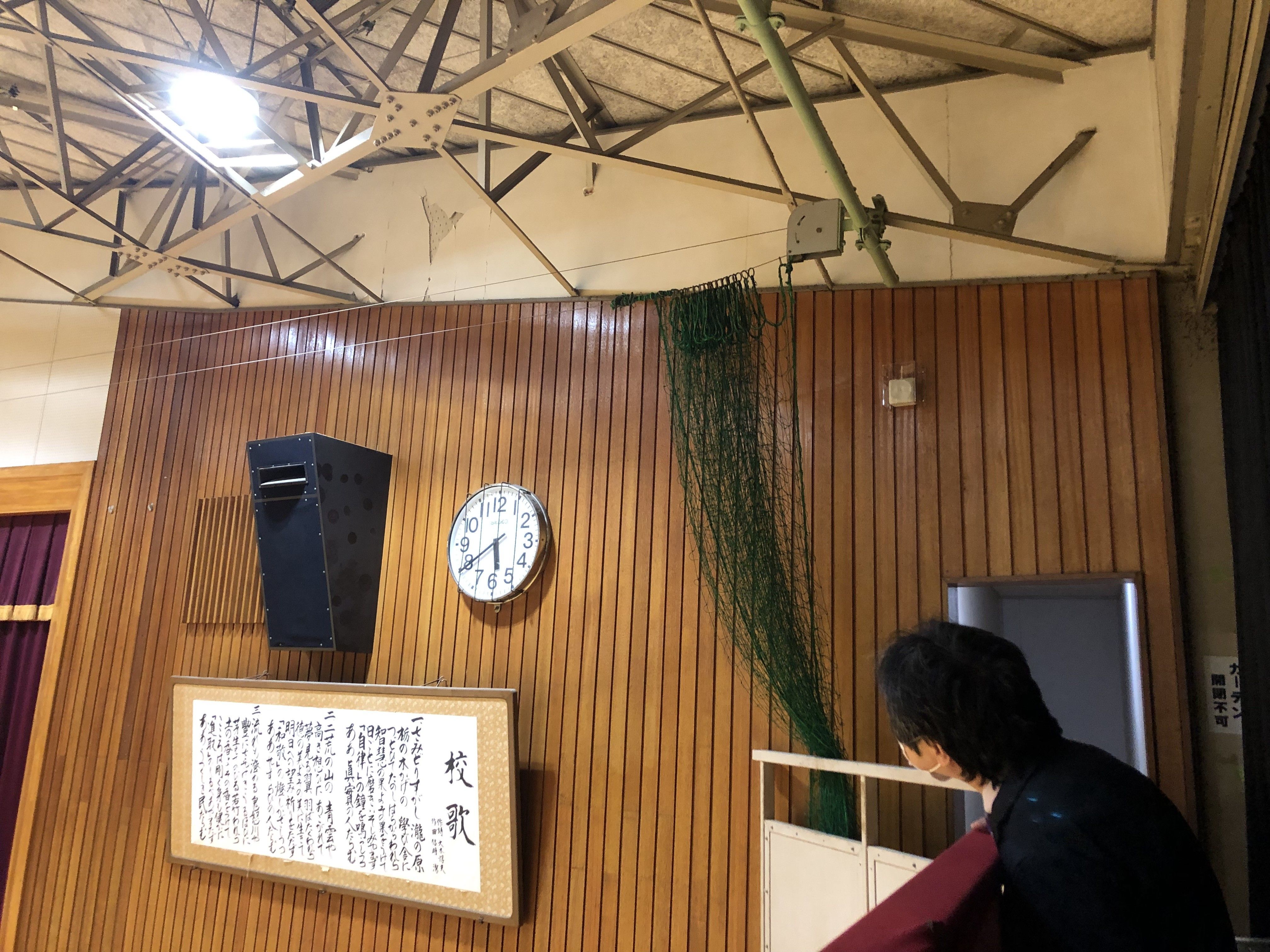 地震によって剥がれた宇都宮高体育館の内壁=1日午後5時40分、宇都宮市滝の原3丁目