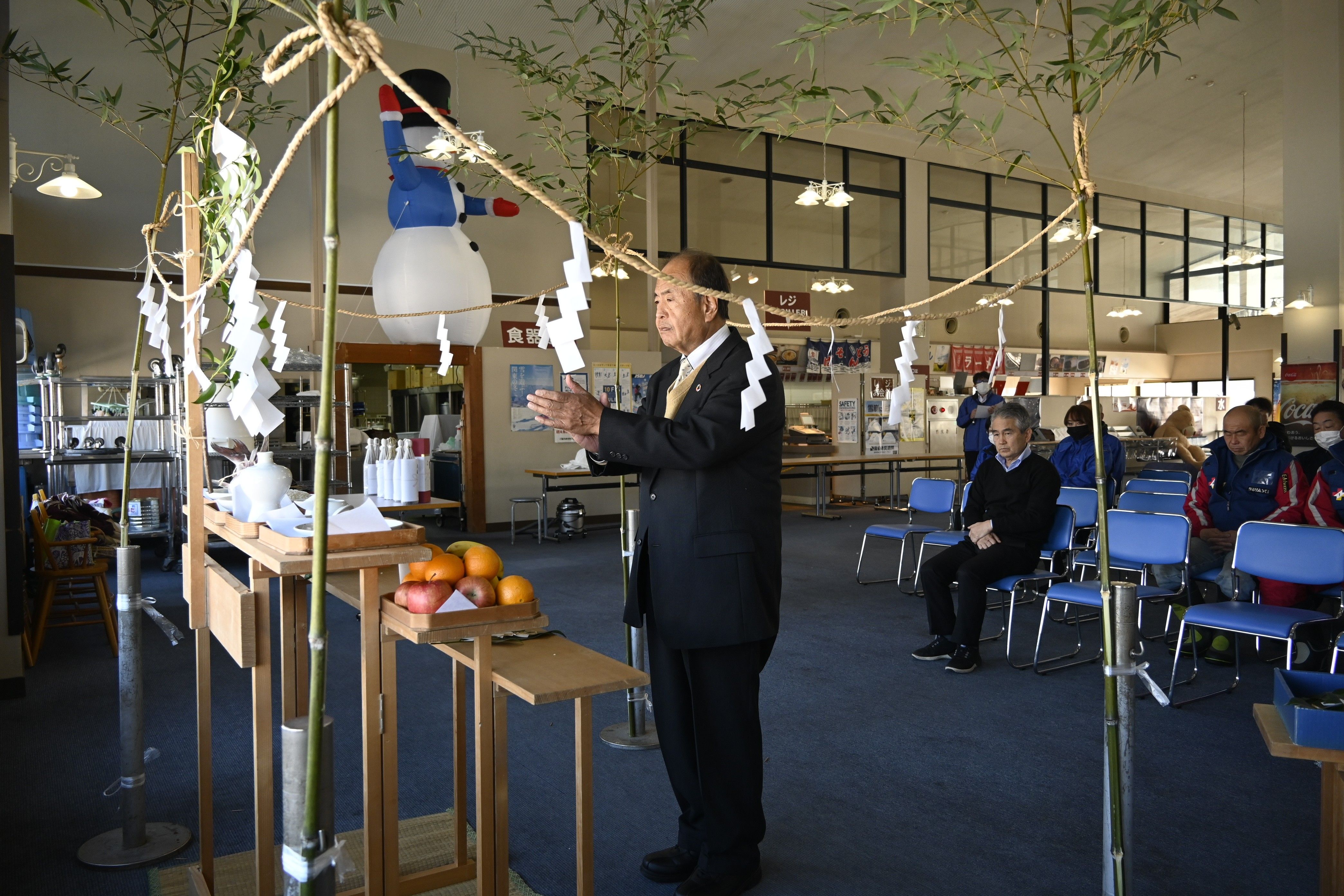 20日にオープンする「エーデルワイススキーリゾート」の安全祈願式