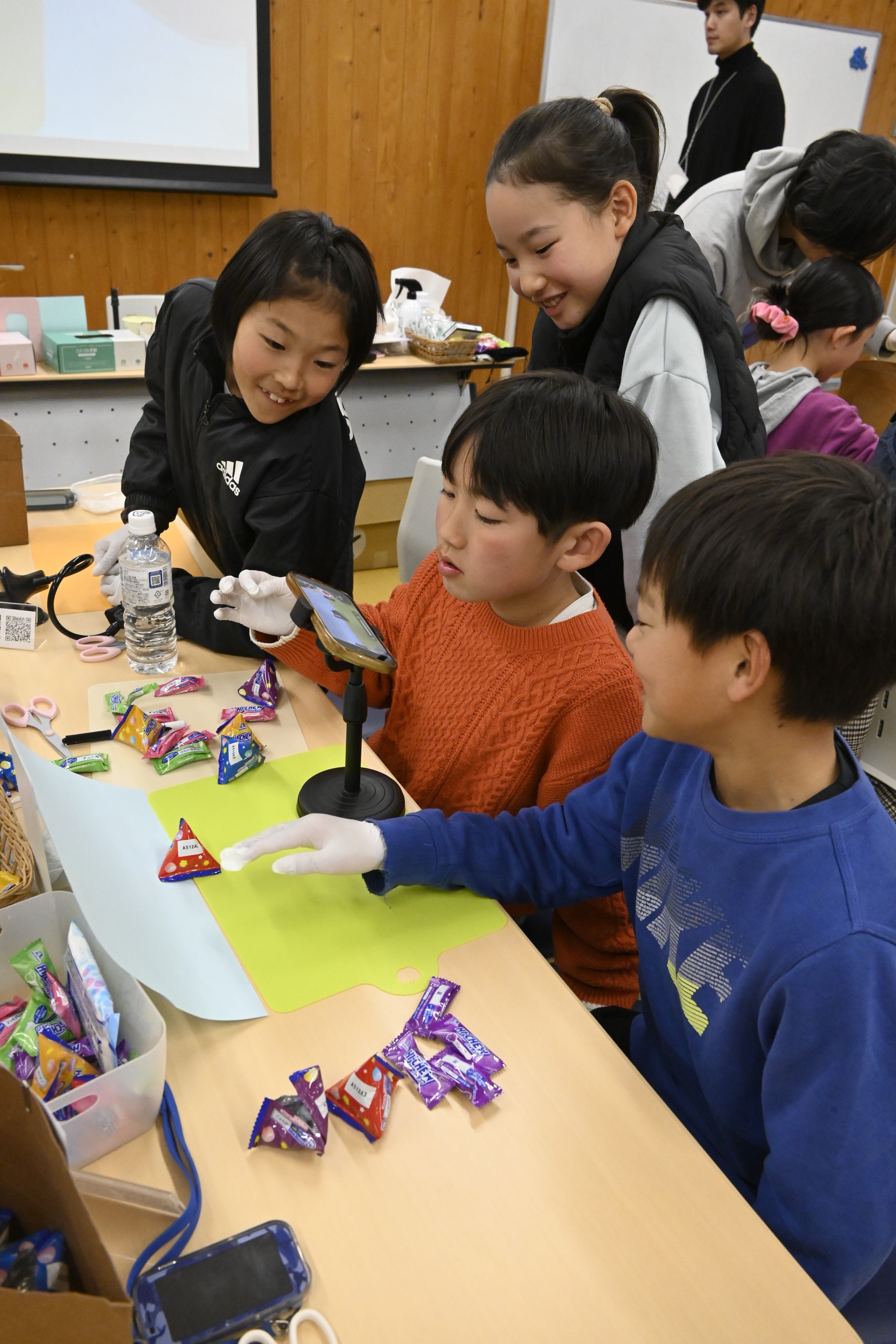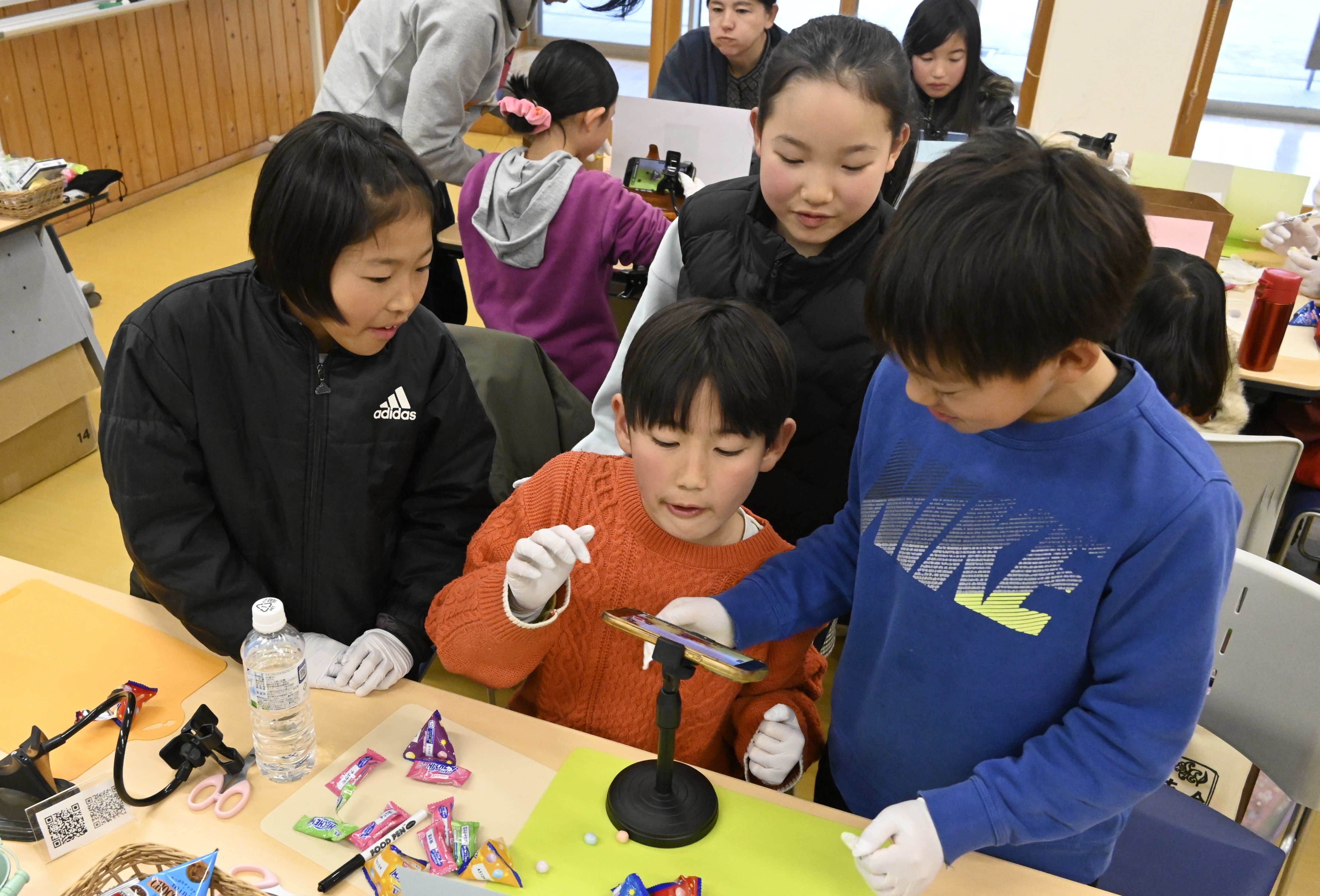 お菓子を使い、こま撮りアニメの制作を楽しむ子どもたち