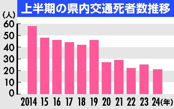 交通事故死者数21人過去最少 県内2024年上半期 歩行者優先意識浸透か