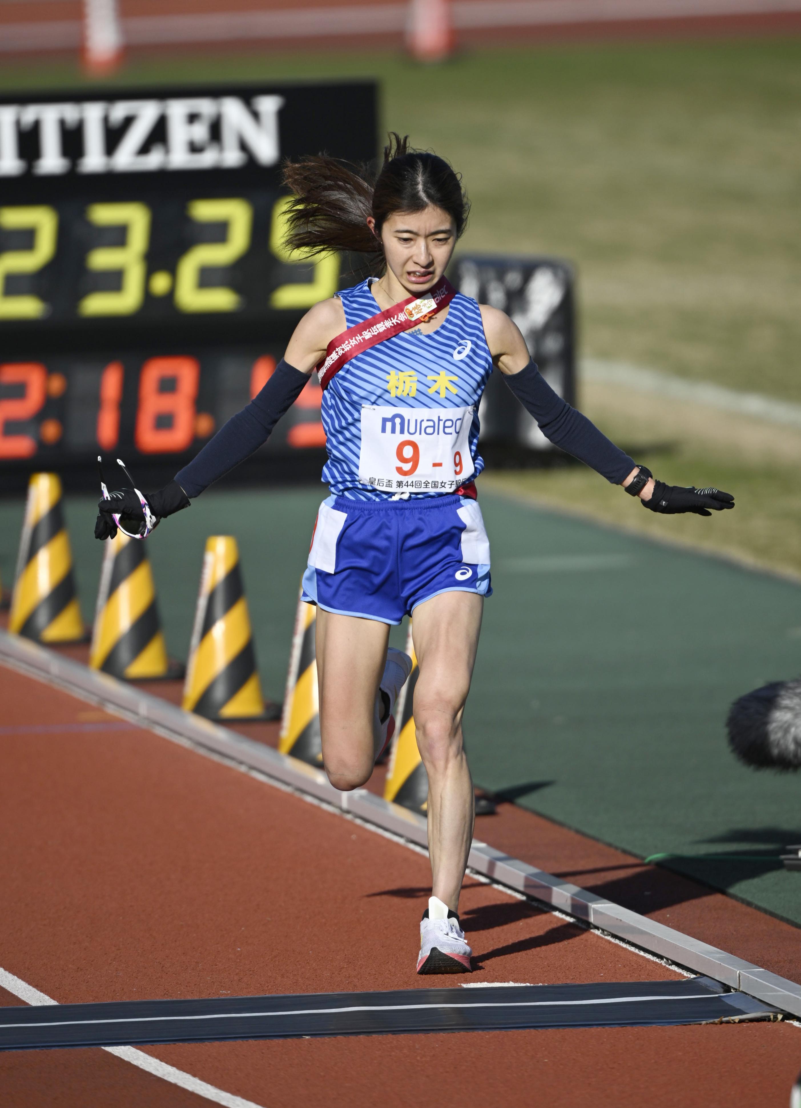 全国都道府県対抗女子駅伝でゴールする栃木のアンカー栗原唯=たけびしスタジアム京都