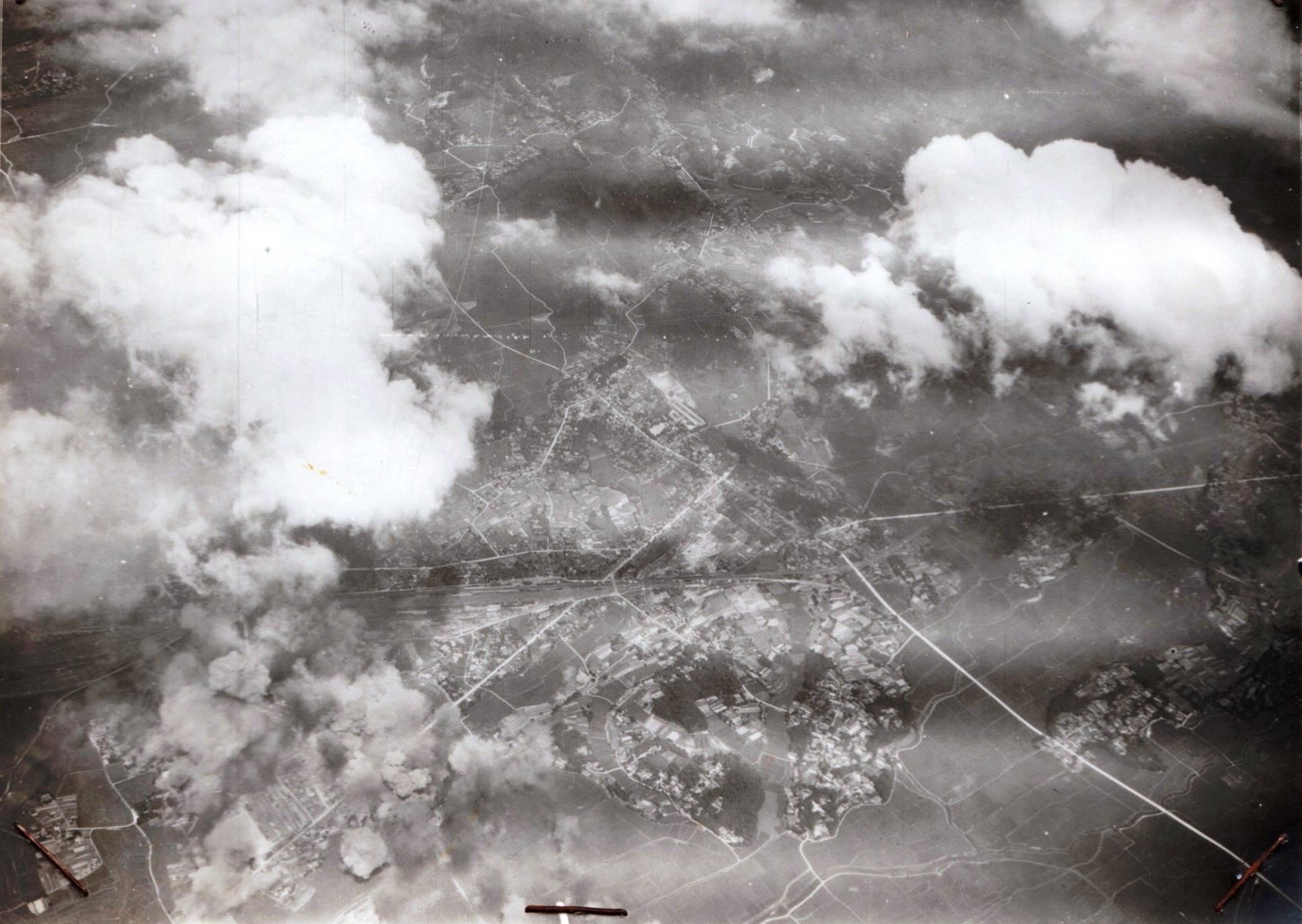 鳥栖市街地一帯が空襲を受けた時の写真=米マクスウェル空軍基地歴史資料室所蔵(工藤洋三氏提供)