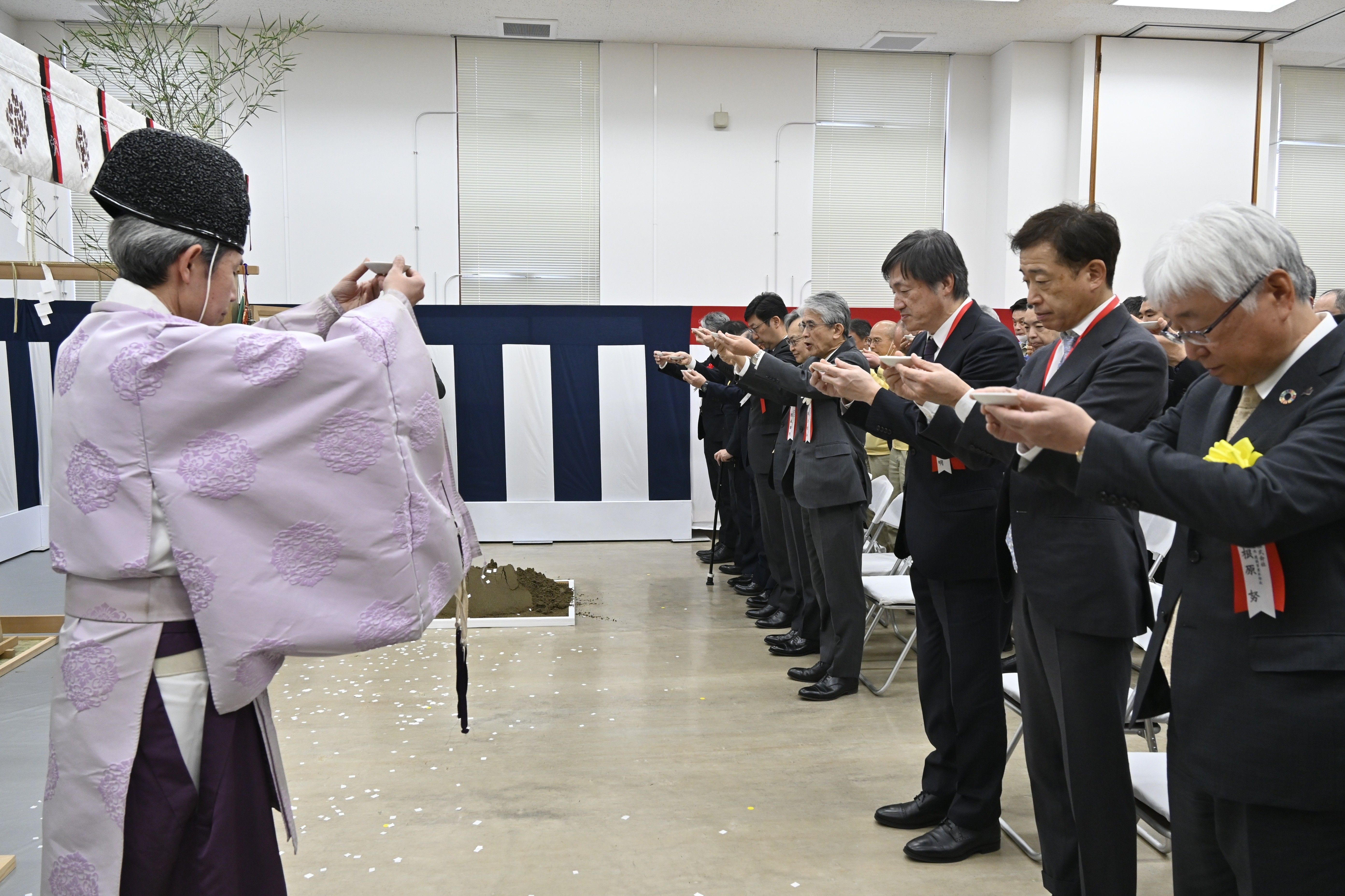 栃木ニコンで行われた新工場の安全祈願祭=7日午前、大田原市
