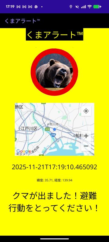 開発中の「くまアラート」で、クマを検知した際の通知のイメージ(フォレックスロボティクス提供)
