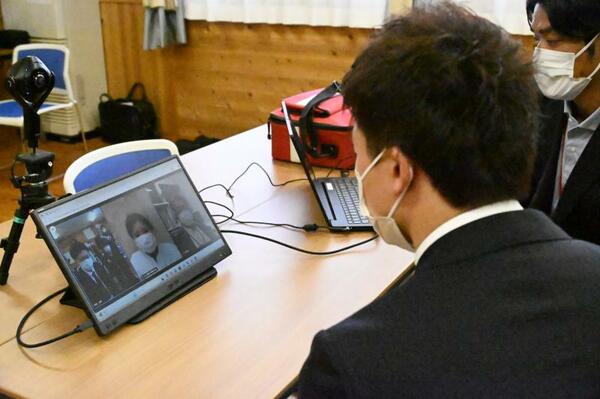 関東近県大会優勝報告のため市役所を訪れたメンバーら