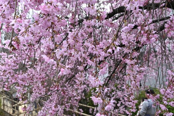 雪崩事故の発生現場を望む献花台で手を合わせる人たち=27日午前8時30分、那須町湯本、広瀬華撮影