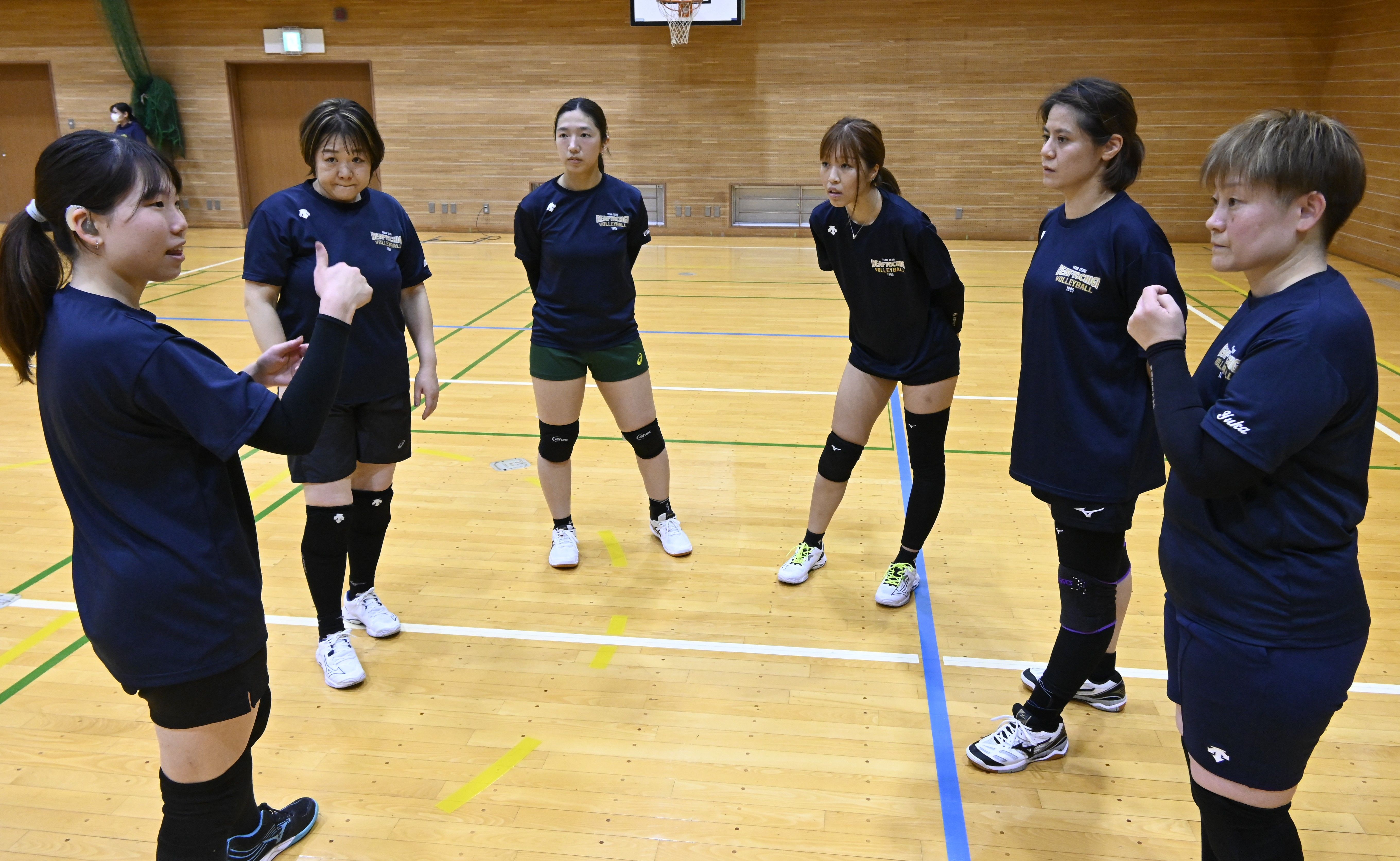 戦術を話し合う県聴覚障害者女子バレーボール部の選手=11月上旬、宇都宮市若草2丁目