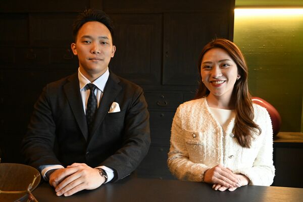 取材に応じるARIの岩野氏(左)と小林氏=東京都