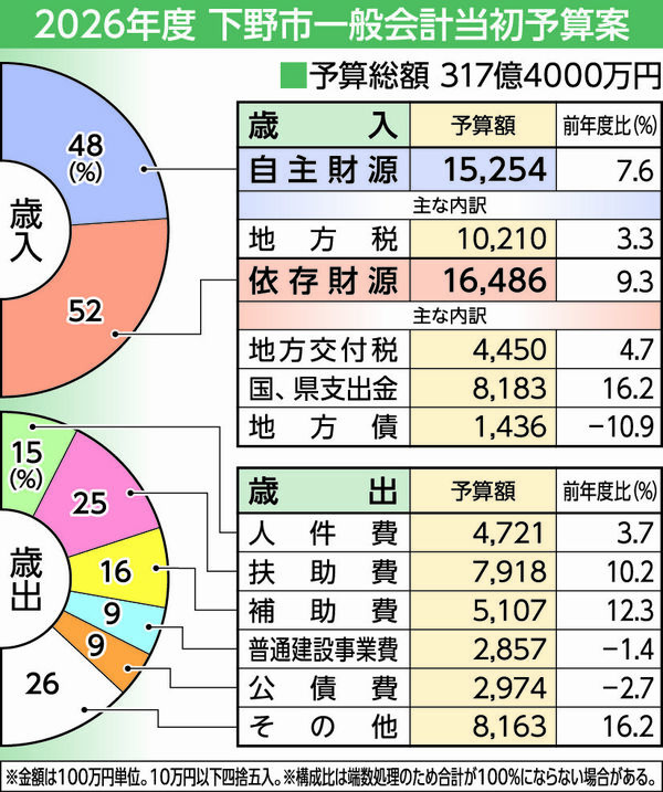 下野市の2026年度当初予算案、2年連続で過去最大 「未来に向けた投資」積み上げ