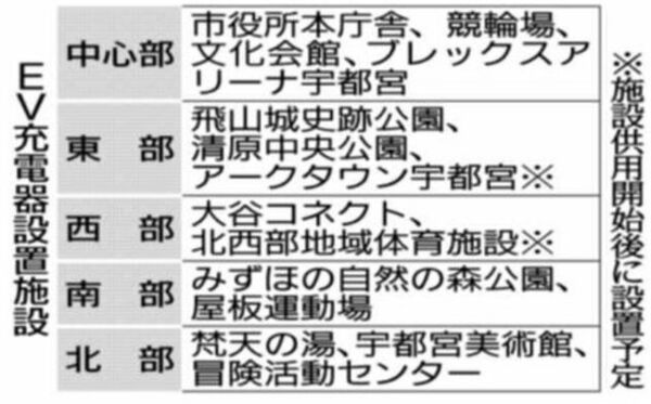 宇都宮市、EV充電器新たに12カ所設置 ブレックスアリーナや大谷コネクトなど