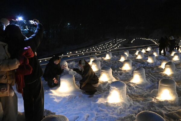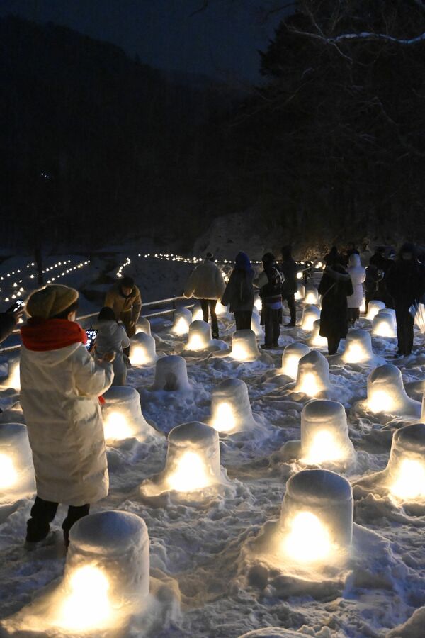 ろうそくの明かりが銀世界を照らす「かまくら祭」