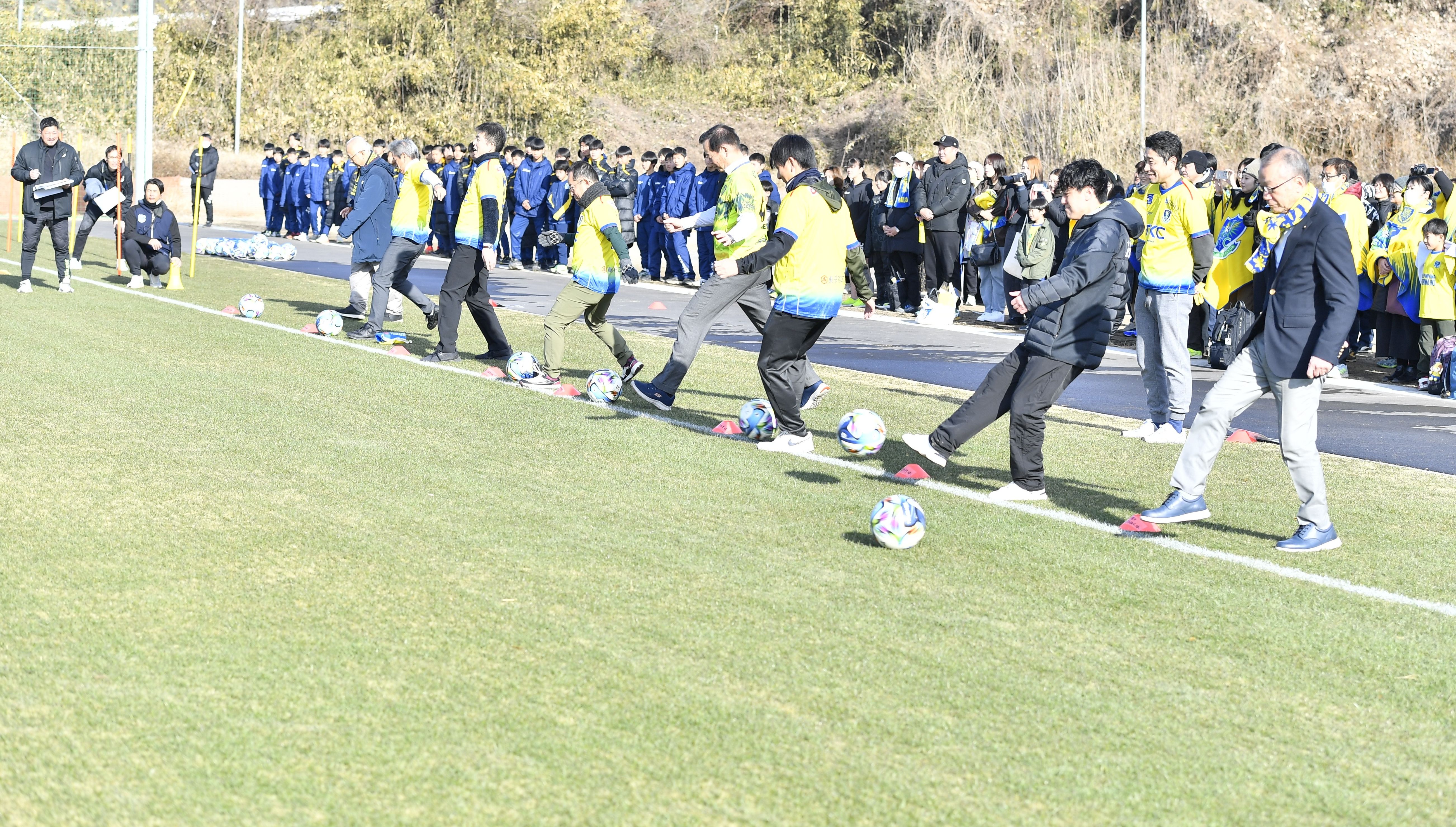 新練習場でキックインセレモニーに臨む関係者=10日午前、さくら市喜連川