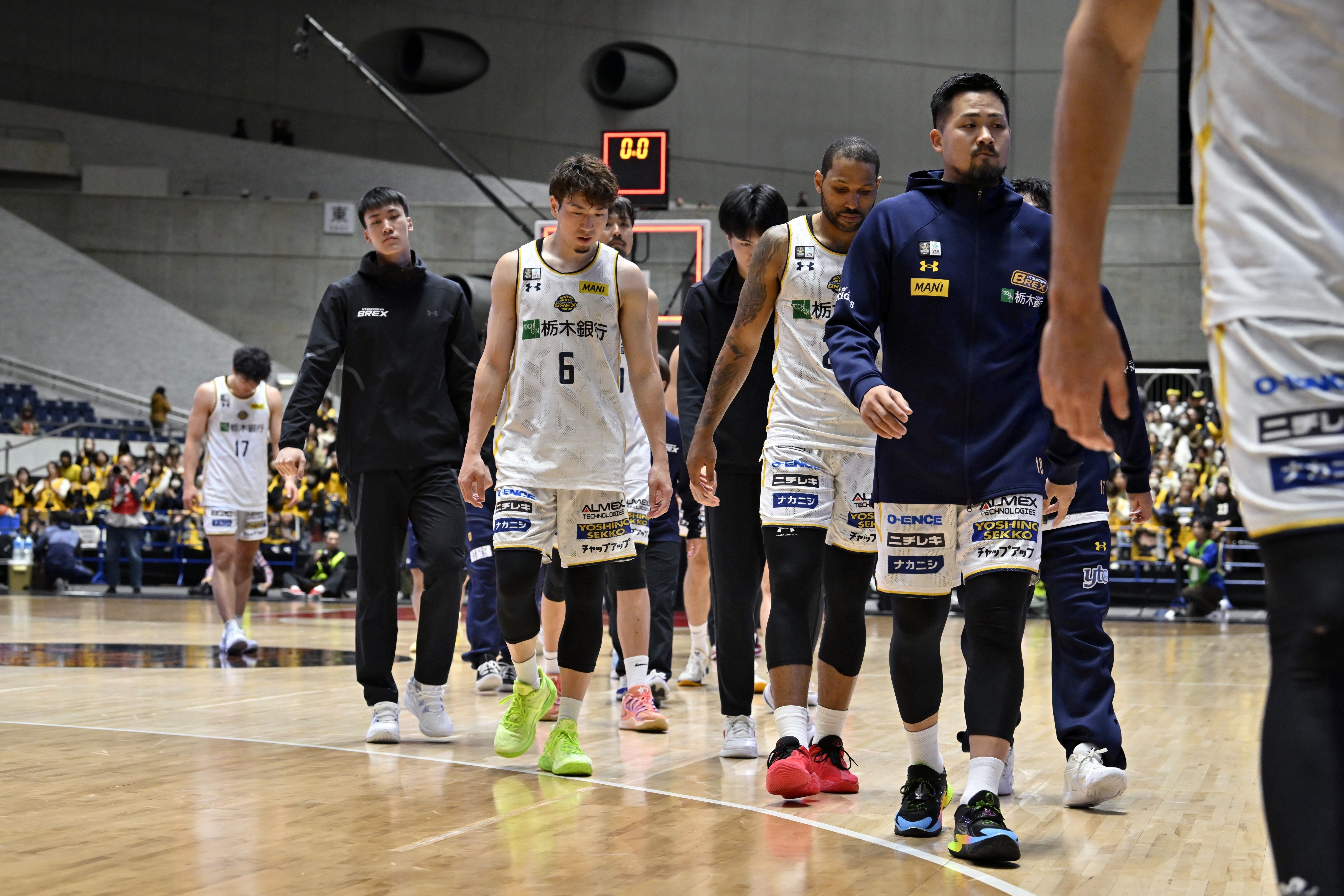 準決勝で敗退し、肩を落として引き揚げるブレックスの選手たち=10日午後5時55分、代々木第一体育館、森田大地撮影