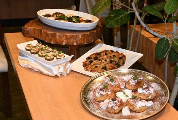ホテルニューイタヤで提供されるキノコ料理=13日午前、宇都宮市