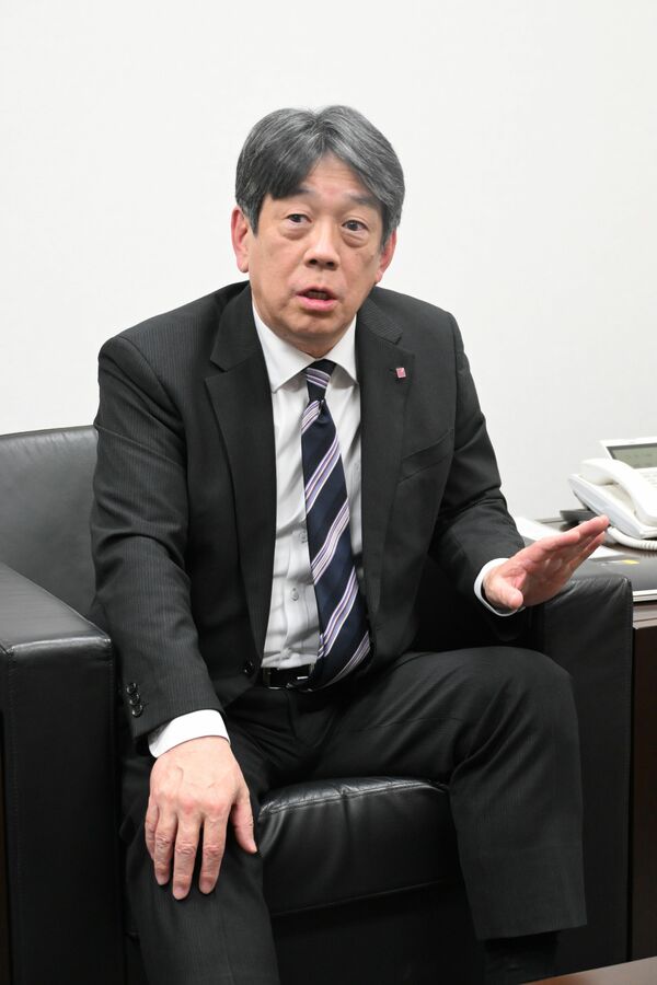 ジムや焼き肉店への新規参入の狙いを語る大田垣社長=カンセキ本社