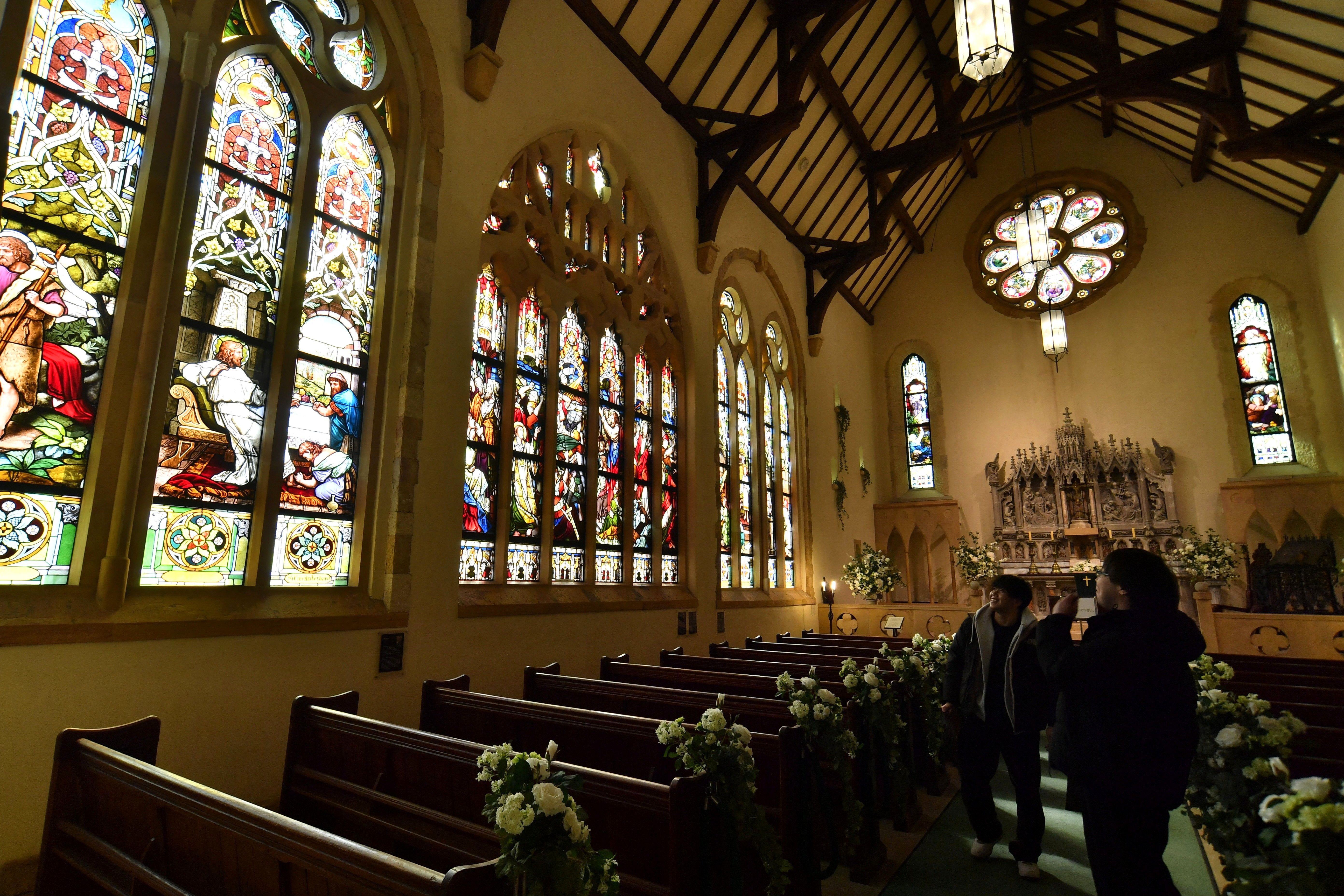 壁一面にステンドグラスが設置されたセント・ラファエル礼拝堂