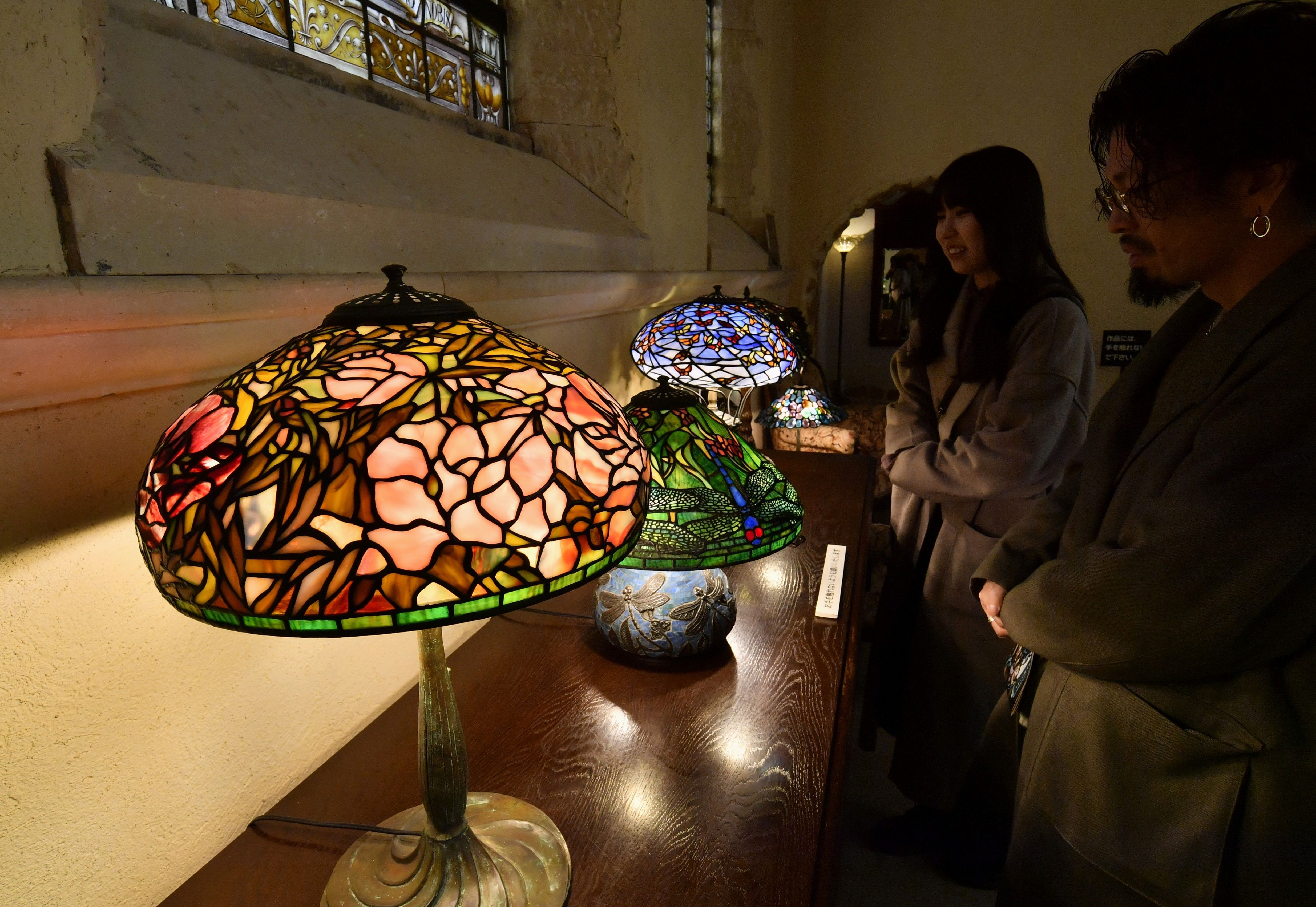 温かな光を放つステンドグラスの照明