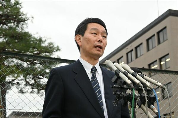 報道陣に結審した裁判への思いを語る遺族代表の奥さん=29日午後4時50分、宇都宮市小幡1丁目