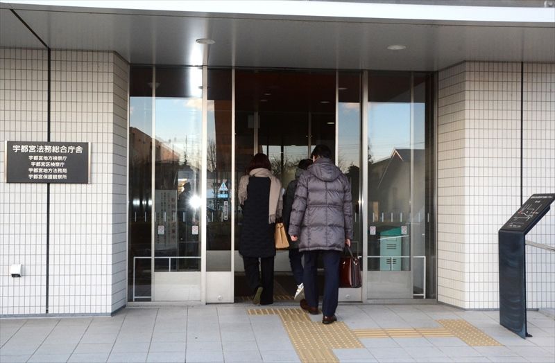 署名提出のため宇都宮地検に入る遺族ら=7日午後、宇都宮市小幡2丁目