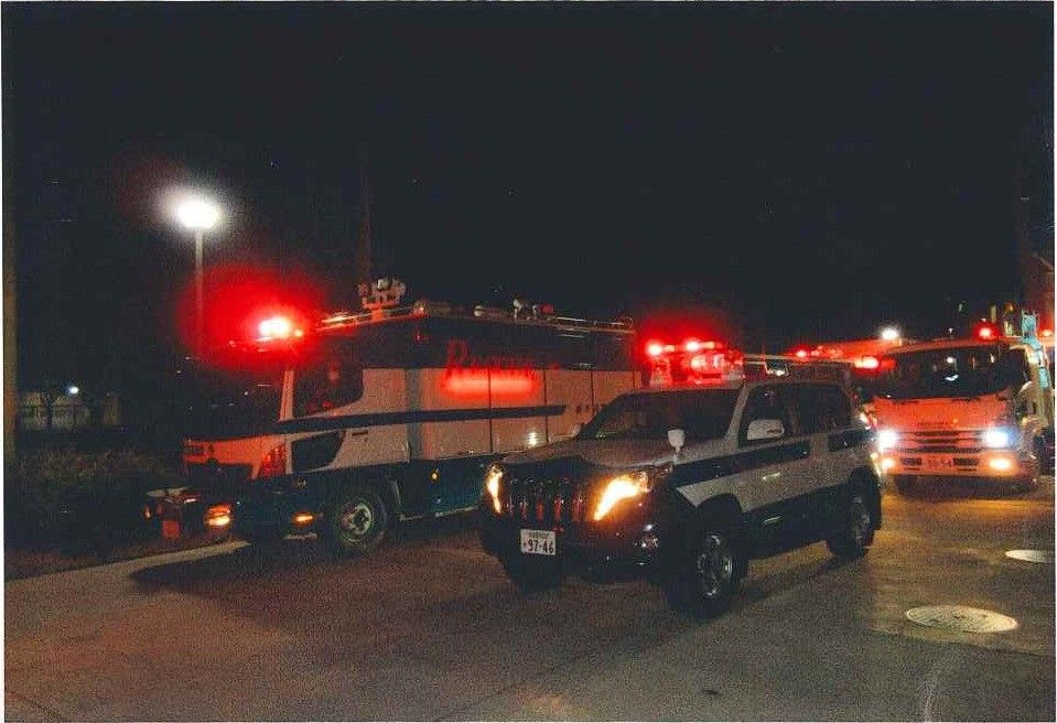 石川県へ向かう栃木県警の車両=1日深夜、宇都宮市若草2丁目(県警提供)