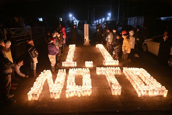 キャンドルの明かりで浮かび上がった「1.1 NOTO」の文字=1日午前0時、石川県輪島市町野町、河野光吉撮影