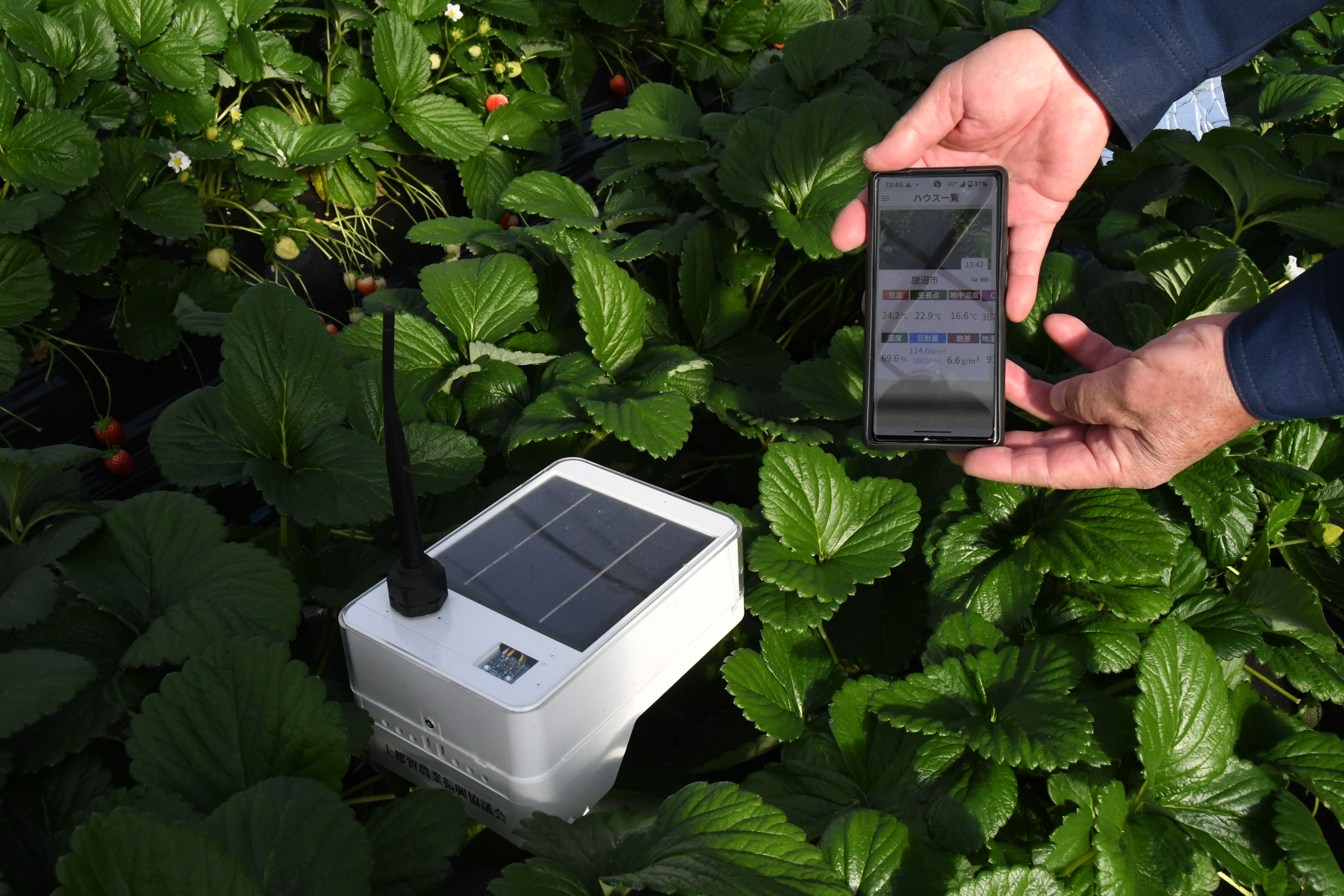 気温などのデータを観測する機器(左)。データはスマートフォンで確認できる