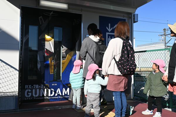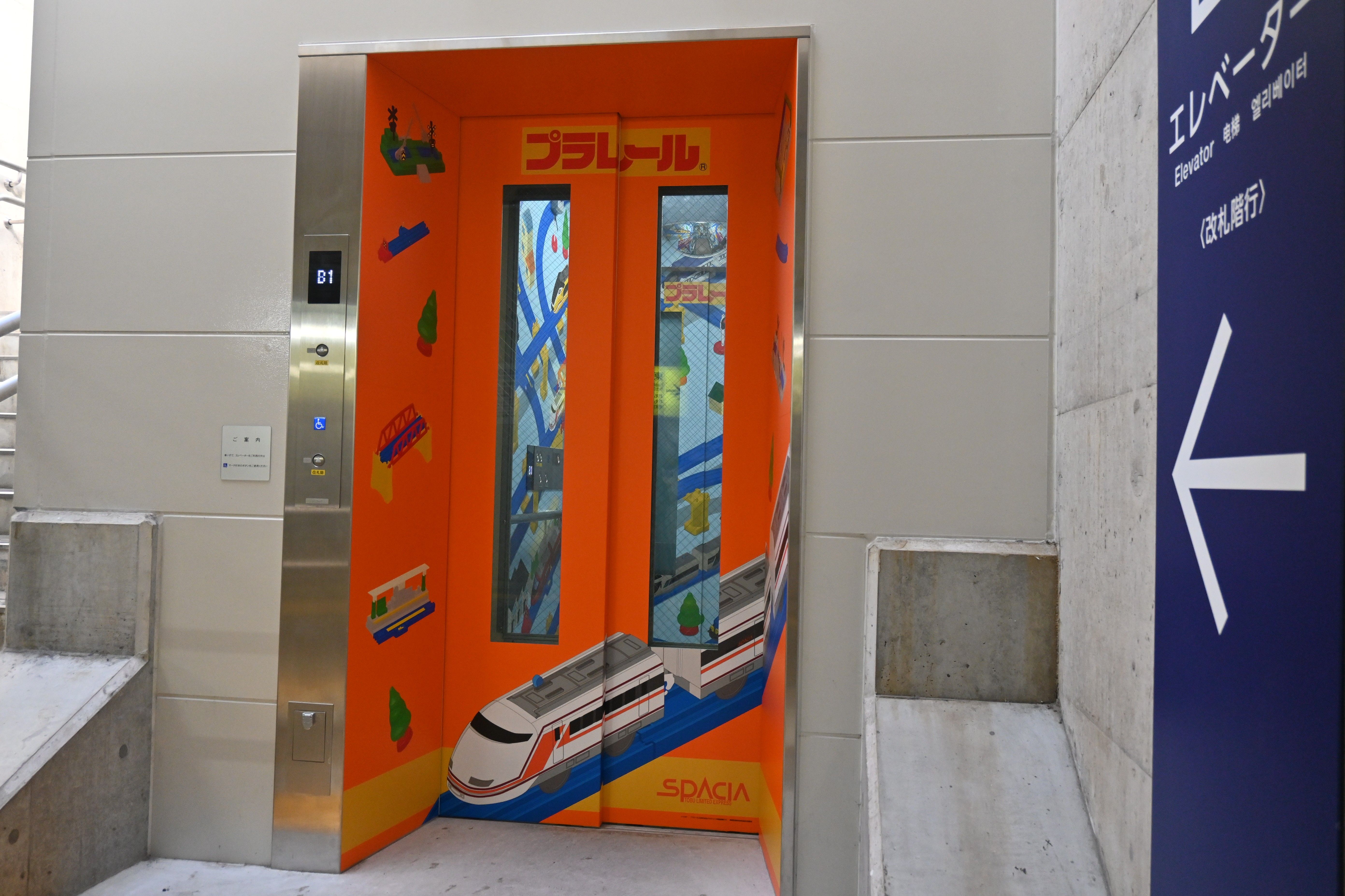 「乗りまーす」 壬生・おもちゃのまち駅にガンダムのラッピングエレベーター まるで操縦席にいる感覚