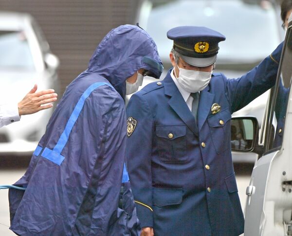 送検のため下野署を出る容疑者=20日午後0時10分、下野署