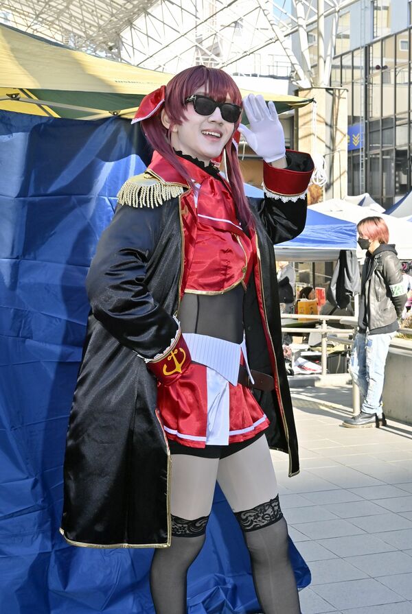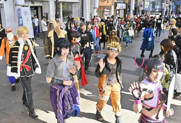 オリオン通りを練り歩くコスプレーヤーたち=1日午前11時25分、宇都宮市江野町