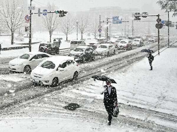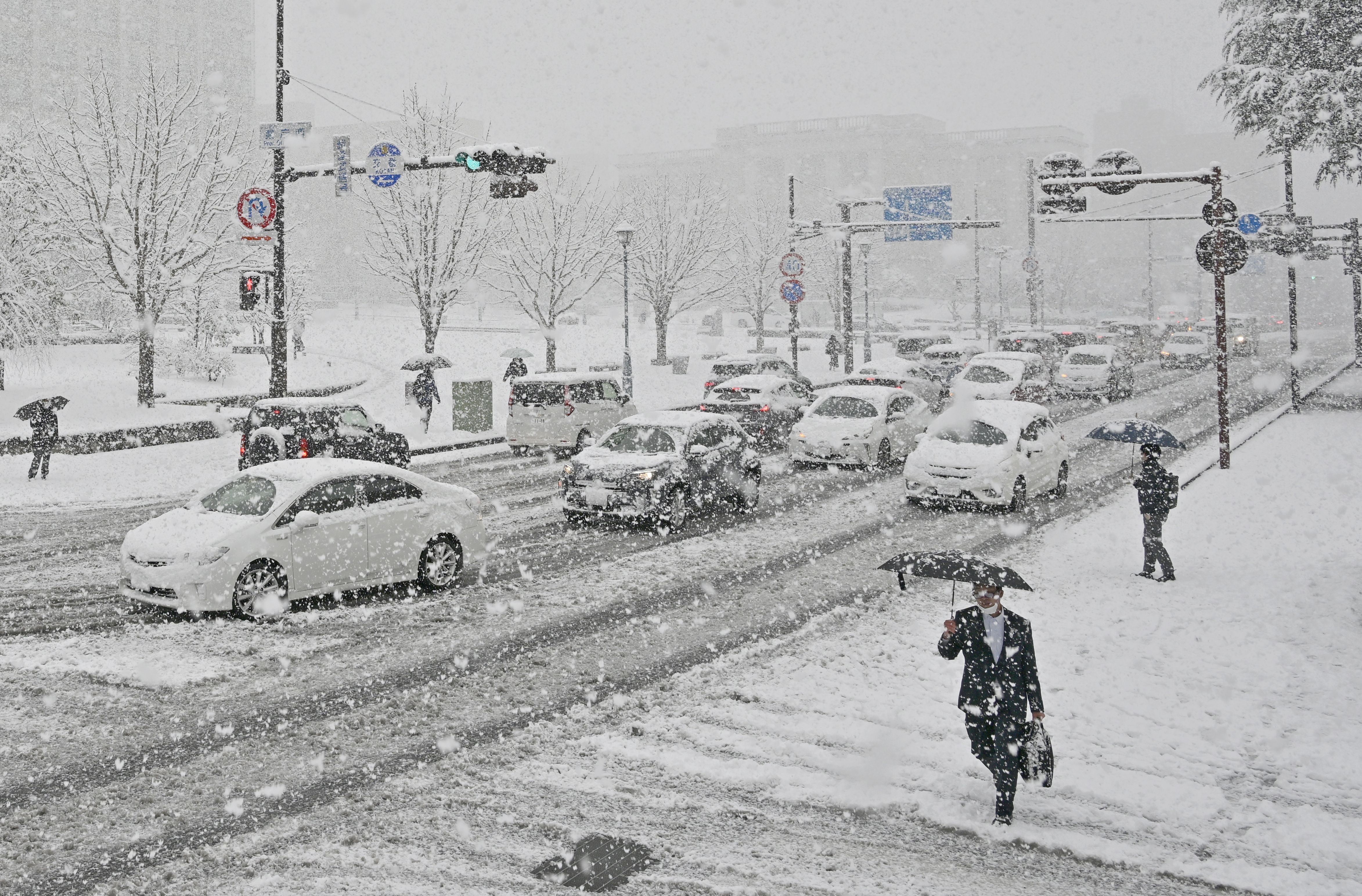 大雪警報が発表された宇都宮市内=10日午前8時25分、宇都宮市本町
