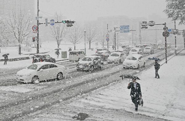 大雪警報が発表された宇都宮市内=10日午前9時15分、宇都宮市昭和1丁目